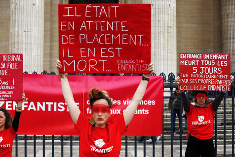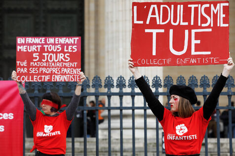 En France, un enfant meurt tous les 5 jours sous les coups d'adultes ou par négligence. Le collectif Enfantiste a décidé de s'attaquer au silence qui entoure le sujet de la maltraitance de l'enfance dans notre pays. Le 26 octobre 2024, il a organisé un Die In Place du Panthéon durant lequel les noms des enfants tués en 2024 ont été énoncés et des figurations de tombes et de corps ont été exposées.