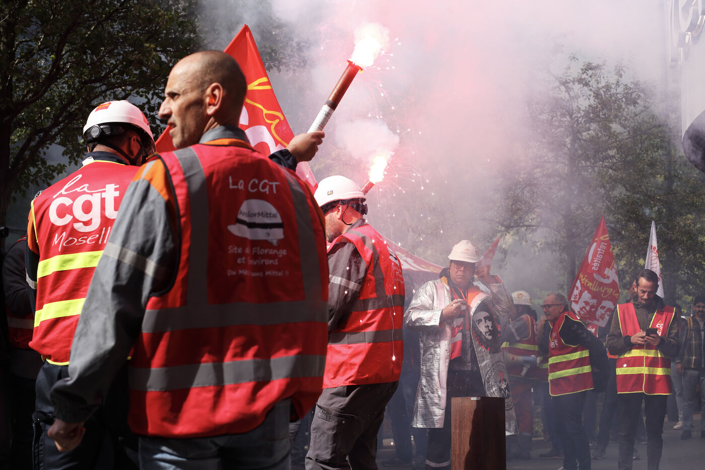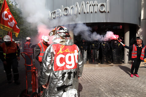 CGT rally in front of Arcelor Mittal headquarters
