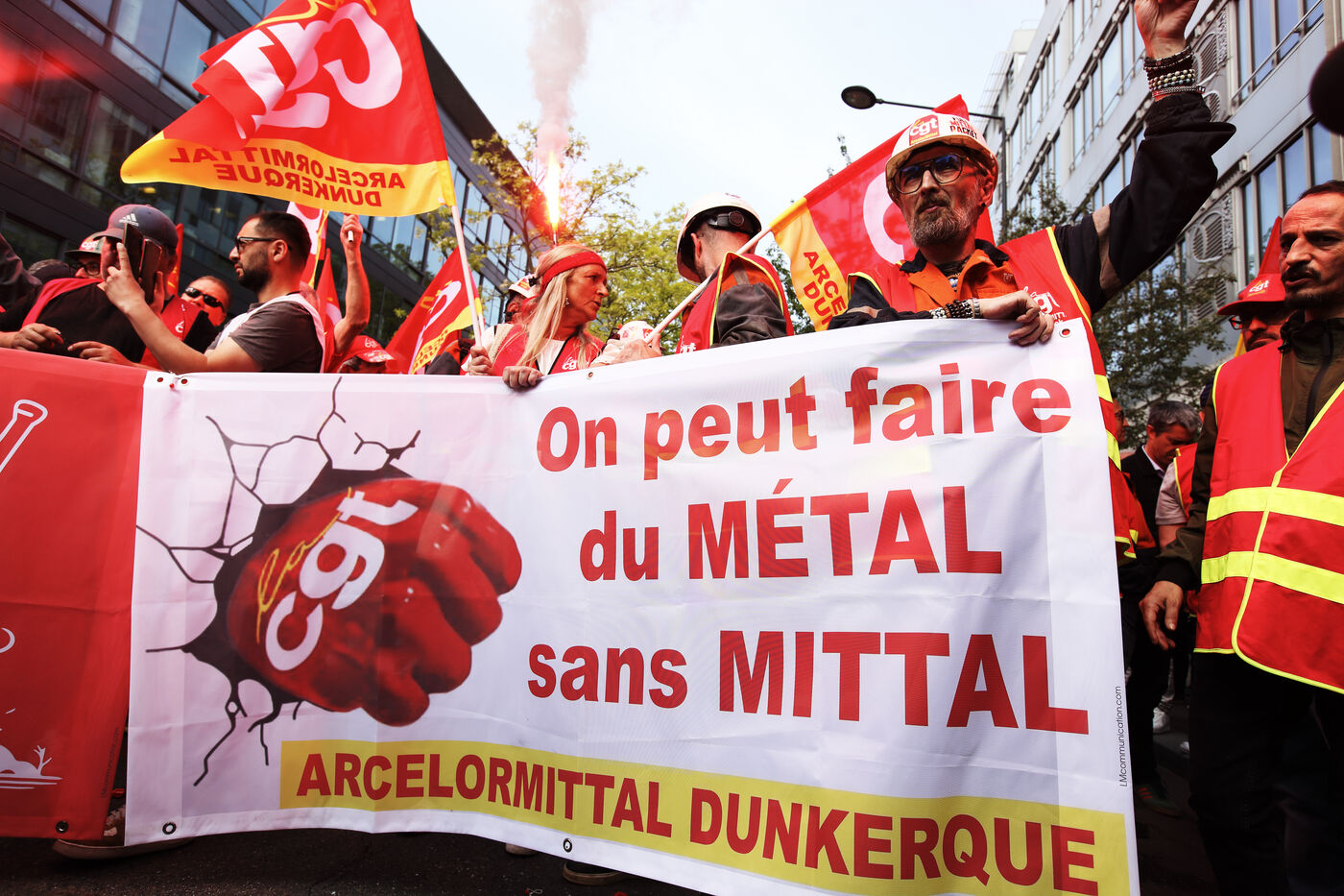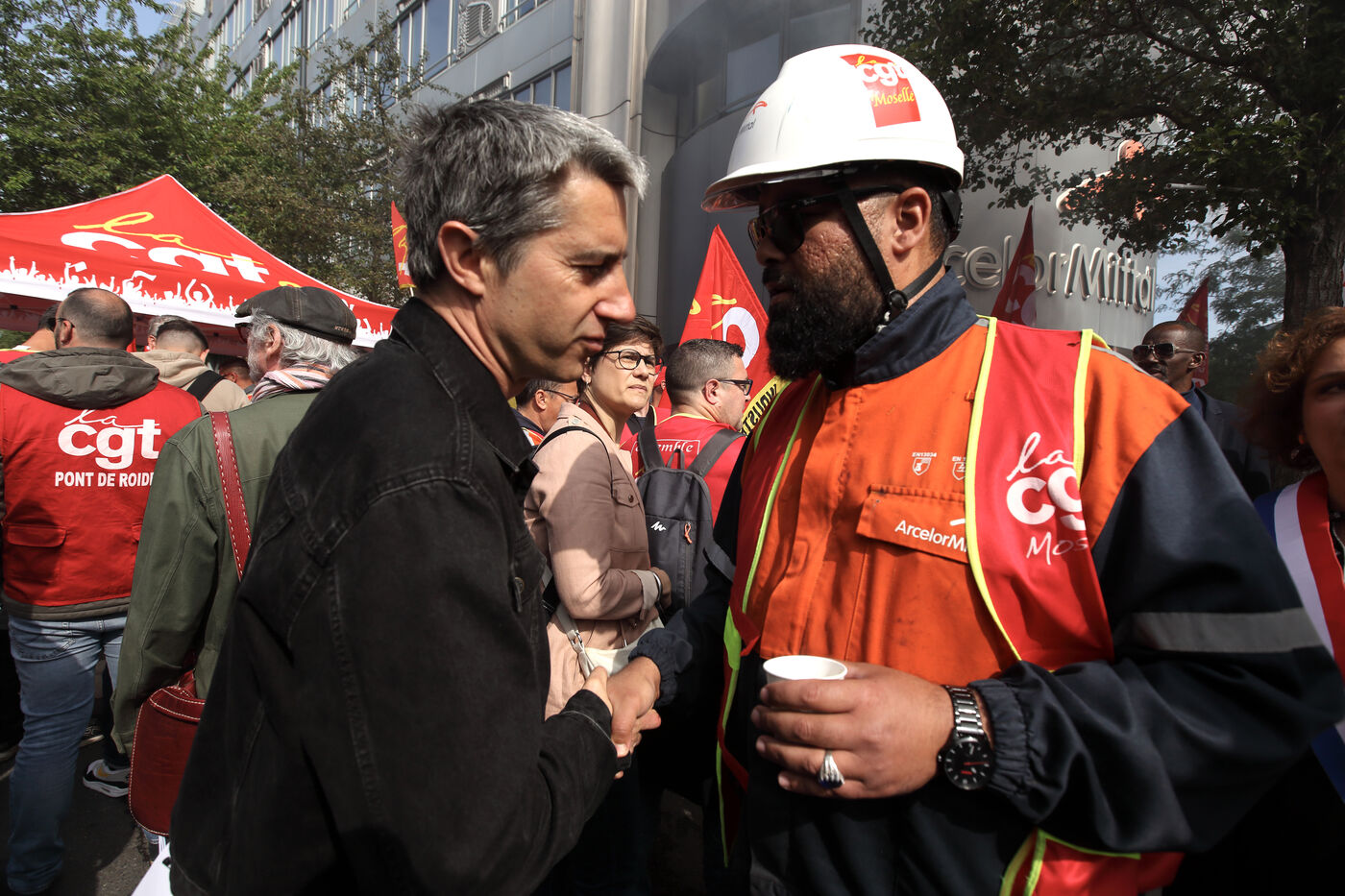 Alors que les inquiétudes grandissent quant à l'avenir des sites sidérurgistes du groupe Arcelor Mittal en France et en Europe; la CGT a appelé à manifester devant le siège du groupe à Sainty Denis le 13 mai 2025. De nombreux politiques étaient présents pour soutenir la revendication de la CGT d'une nationalisation des usines métallurgiques françaises au nom de la souveraineté de la productio industrielle conre les délocalisations.