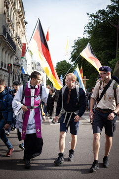 The traditional Paris-Chartres Pentecost pilgrimage departing from Paris