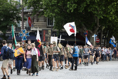 The Chartres pilgrimage departed from Paris. The pilgrims will walk for two days to reach Chartres. It has been organized by the Notre Dame de la Chrétienté association since 1994 and brings together pilgrims of all nationalities united under symbolic banners.