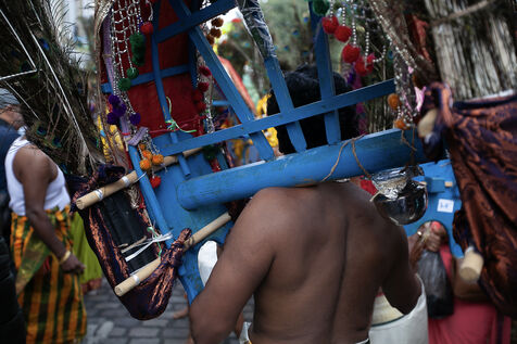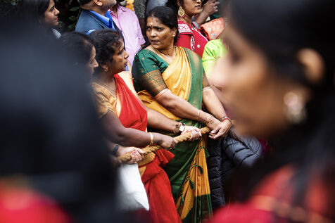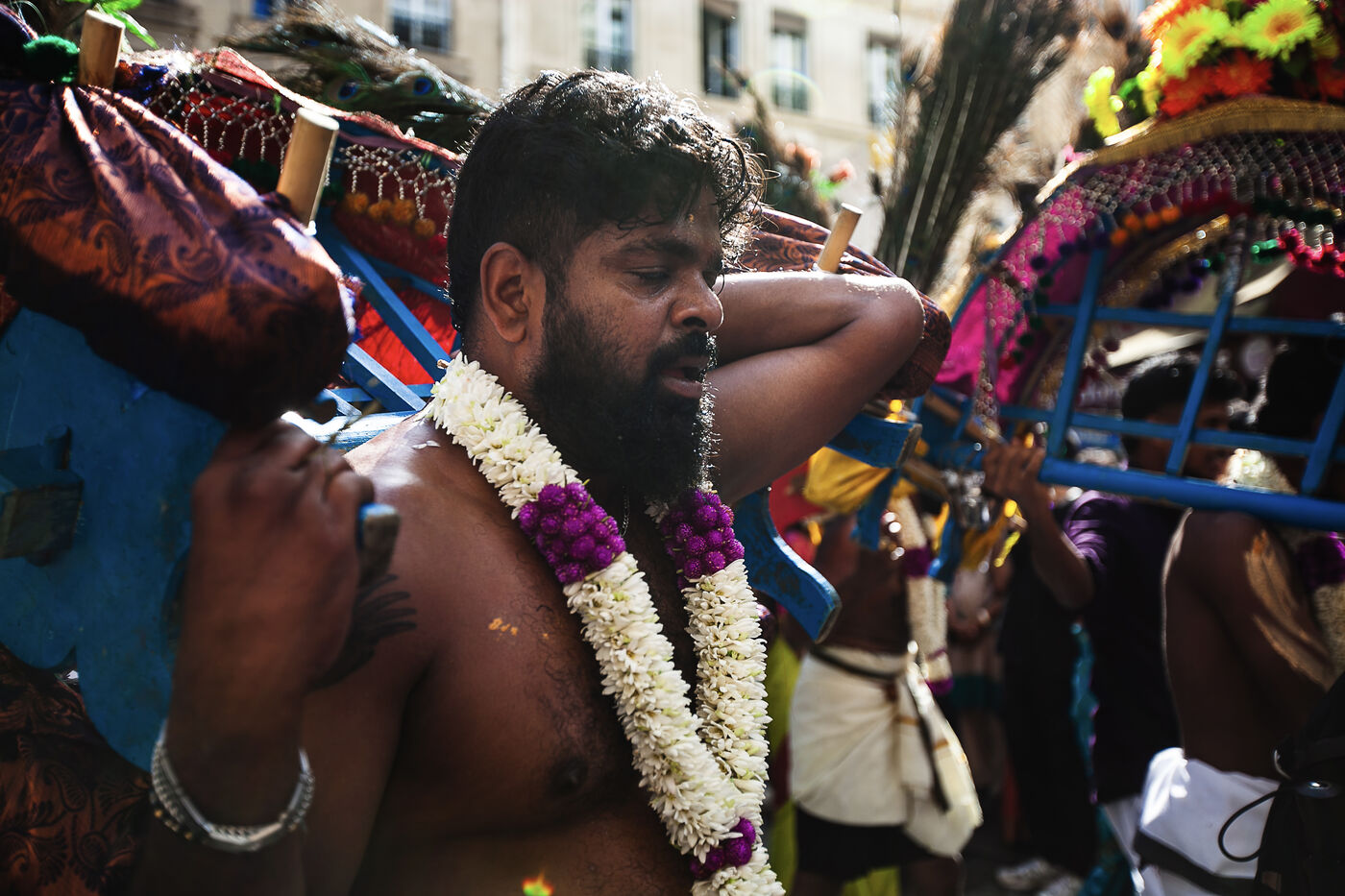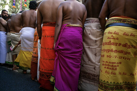 Ganesh, the Hindu god with a human body and an elephant's head, is celebrated every year in the streets of Paris. He brings good fortune to the faithful. The community departs from the temple dedicated to Ganesh in the 18th arrondissement of Paris and travels through the neighborhood during a Sunday of sharing and celebration for thousands of participants in the procession.