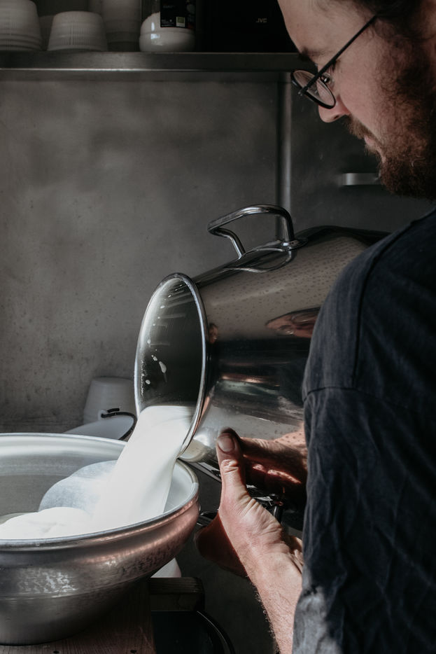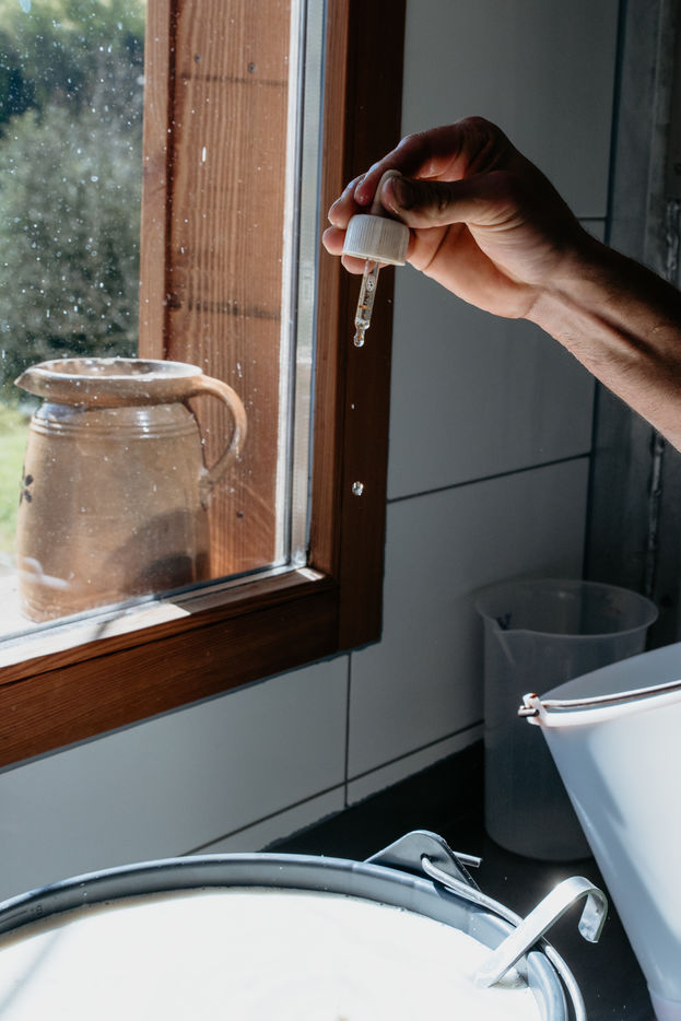Entre février et août Lucas produit du fromage de chèvres à partir d'une vingtaine de chèvres qu'il élève dans les Vosges. Son ambition, produire un fromage local pour une consommation locale mais tout en ayant une démarche respectueuse du rythme des animaux et de leur bien-être.