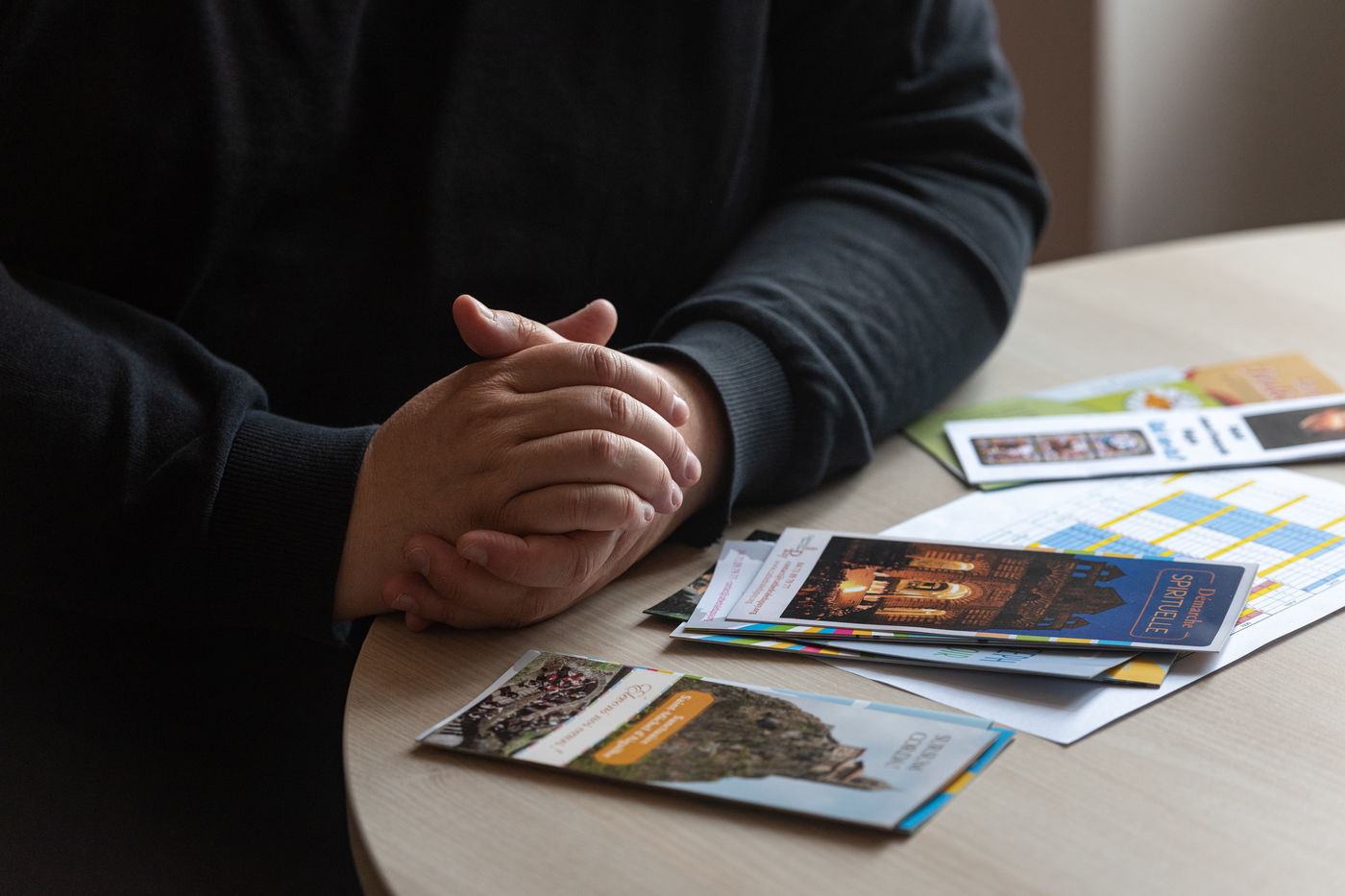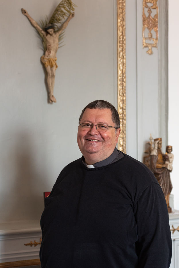 Portraits of Father Jean-Loïc Ollu, rector of Notre Dame du Puy Cathedral in Puy en Vellay. From this city leaves the pilgrimage of Santiago de Compostella.