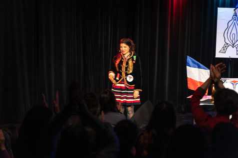 Voyage en Matriarcate, spectacle de Typhaine D, autrice, comédienne, metteuse en scène, formatrice, coach, conférencière engagée pour les Droits des Femmes, des Enfants, des personnes animales et de l'écologie. La comédienne présente une nouvelle fois son spectacle "La Pérille Mortelle" mis à jour avec l'actualité post élection présidentielle.