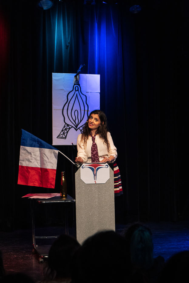 A journey in Matriarchy, a show by Typhaine D, author, actress, director, trainer, coach, and speaker committed to the rights of women, children, animals and ecology. The actress presents once again her show "La Pérille Mortelle" updated with the post presidential election news.