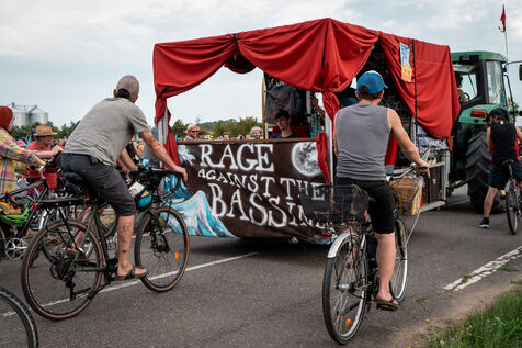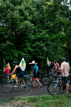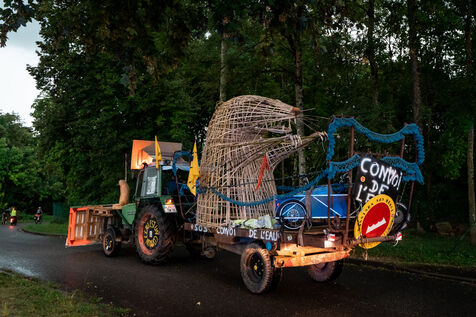 After setting off from Sainte-Soline, the site of a demonstration against the mega basins, the water convoy organized by Les Soulevement de la Terre, which included the Confederation Paysanne, RAFU and Bassines Non Merci, stopped off in Lestion. The camp is hosted in a farmer's field, not far from the nuclear power plant.