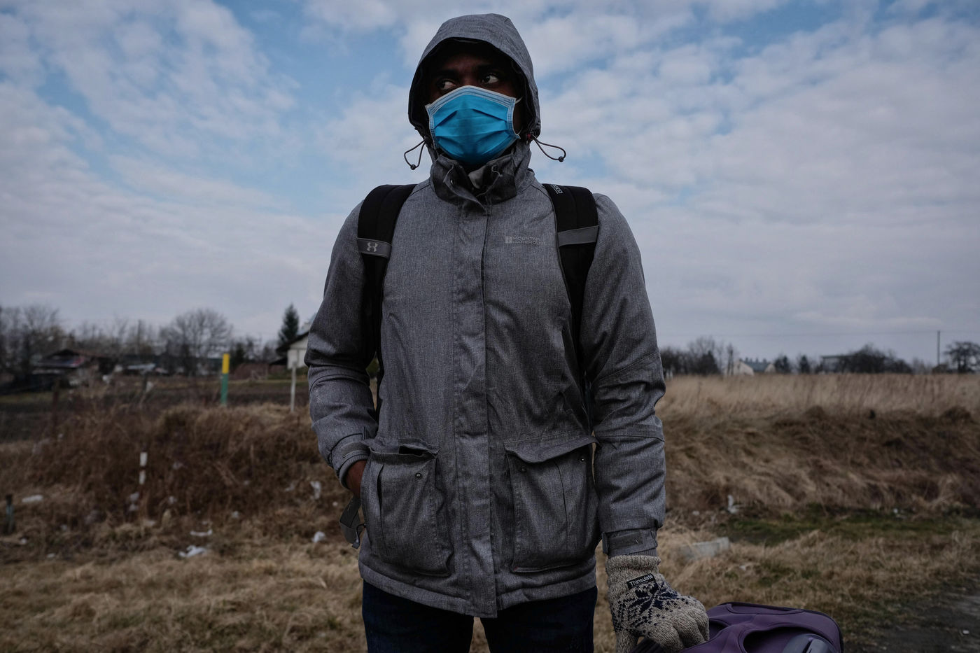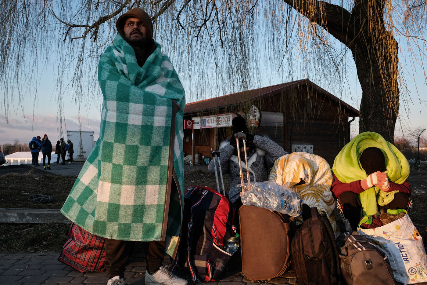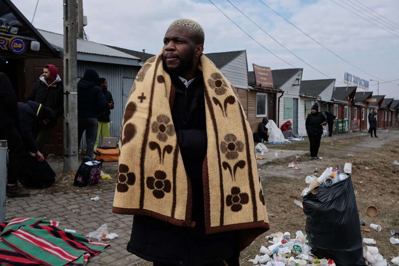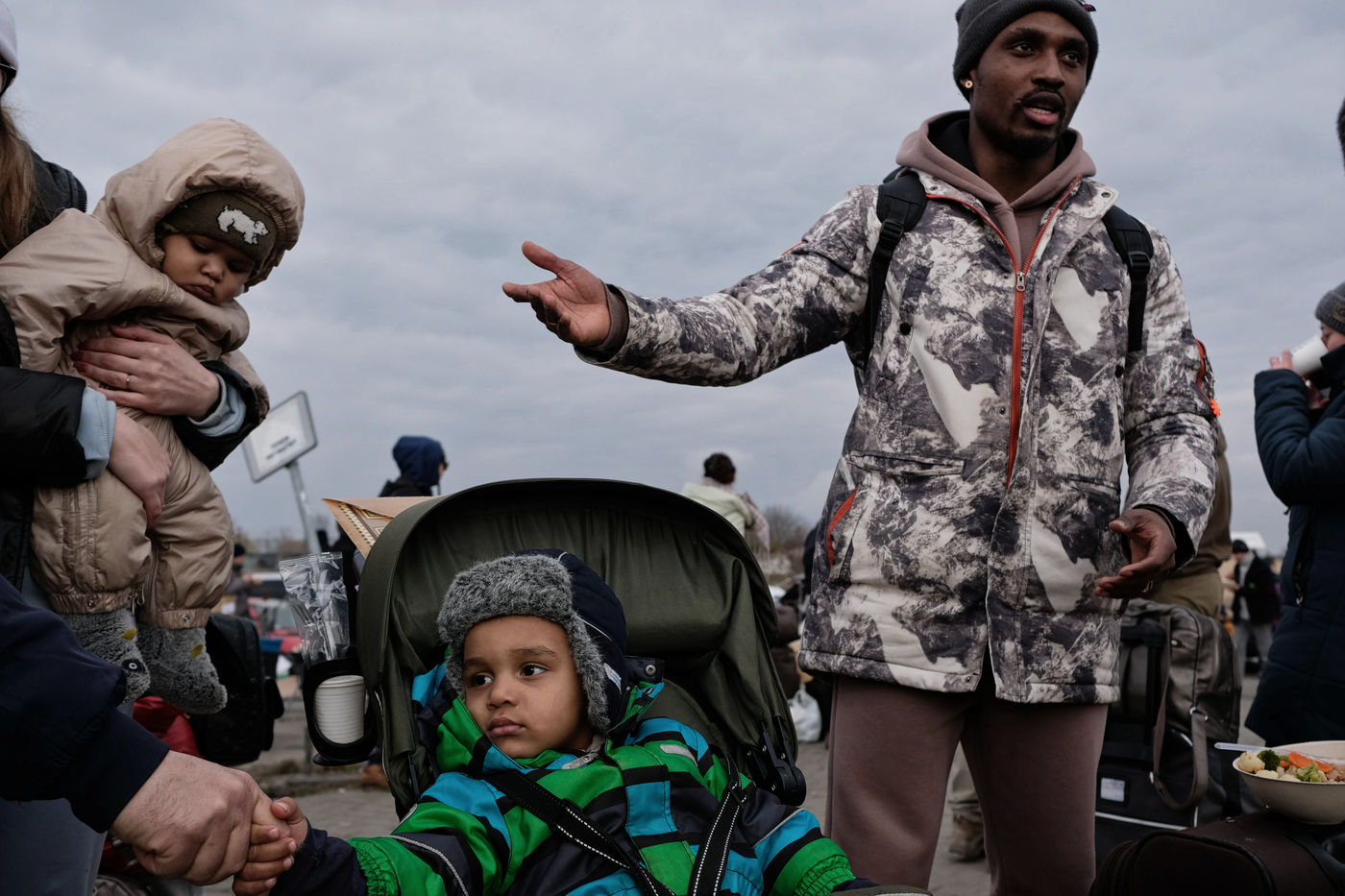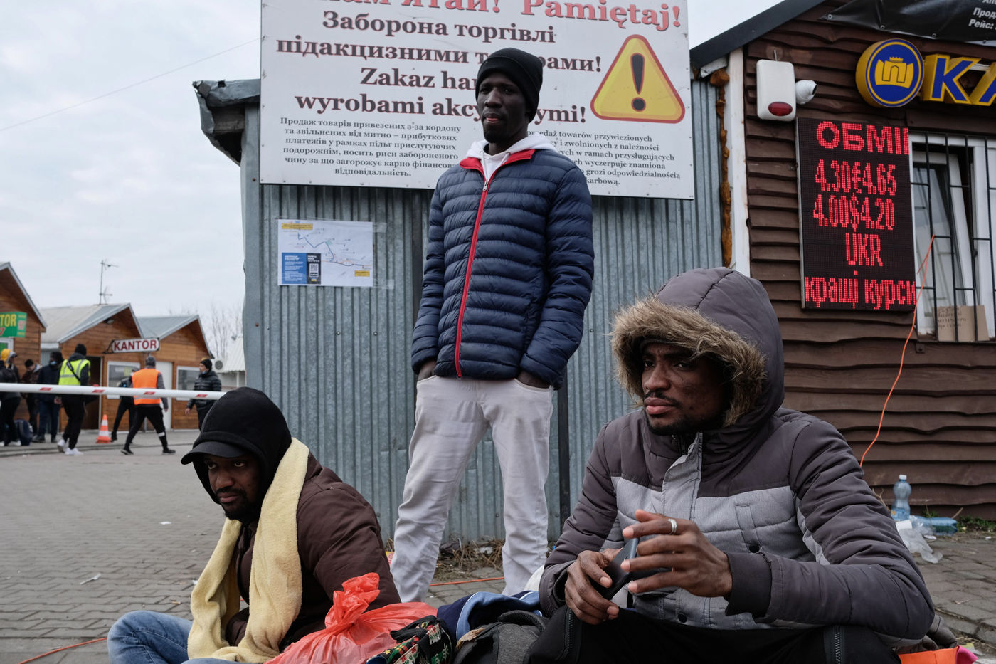 Des réfugiés originaires d'Afrique, d'Asie du Sud et du Moyen-Orient ont déclaré que les gardes-frontières les ont fait attendre pendant des jours pour quitter l'Ukraine, à l'extérieur par un temps souvent neigeux, avant d'entrer en Pologne, affirmant que les officiers de l'immigration ukrainiens, débordés, donnaient la priorité au traitement de ses propres citoyens - principalement des femmes avec des enfants en bas âge. Les fonctionnaires ukrainiens ont déclaré que leur intention était de laisser passer les familles avec de jeunes enfants en premier. En moins d'une semaine, le pays a traité plus de 600 000 personnes, soit beaucoup plus que d'habitude. Les réfugiés africains ont reçu l'ordre de partir à pied et ont été laissés dans le froid pendant 24 à 48 heures, sans abri, avec peu de nourriture ou d'informations sur ce qui se passait.