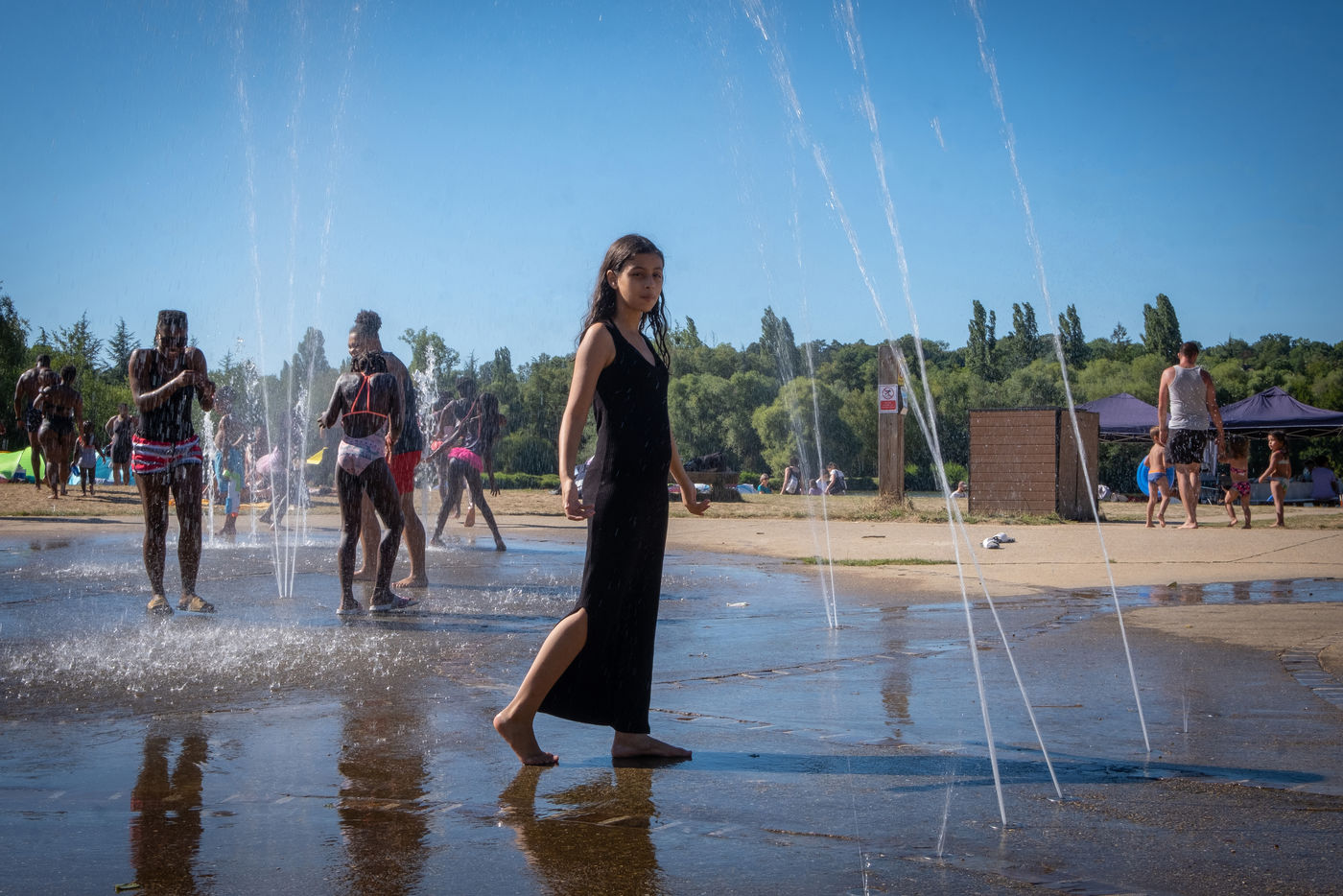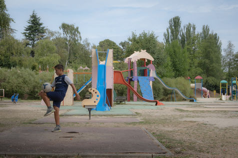 Developed in the 1960s, leisure centers are an inexpensive way to swim, practice water sports and outdoor activities and find a place to relax near the cities. There are 12 of them in the Paris region, and they have become increasingly popular in recent years. We are promised to spend "a heavenly summer" there. People of all ages and all social backgrounds mix there. This series presents a set of photos of families, children, teenagers, friends, seniors, taken in Bois-le-Roi, Créteil, Draveil (Ile-de-France) and in Vernet-la-Varenne (Auvergne). To finish, a small tour in the private domain of Chamarande, where the luxuriant nature contrasts with the artificial side of the Ile-de-France leisure islands.