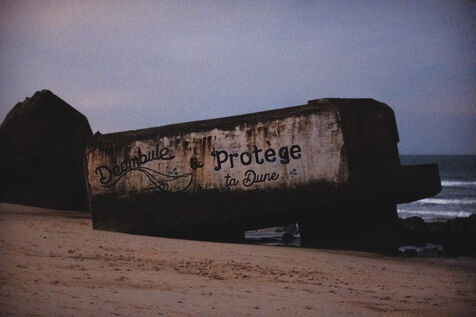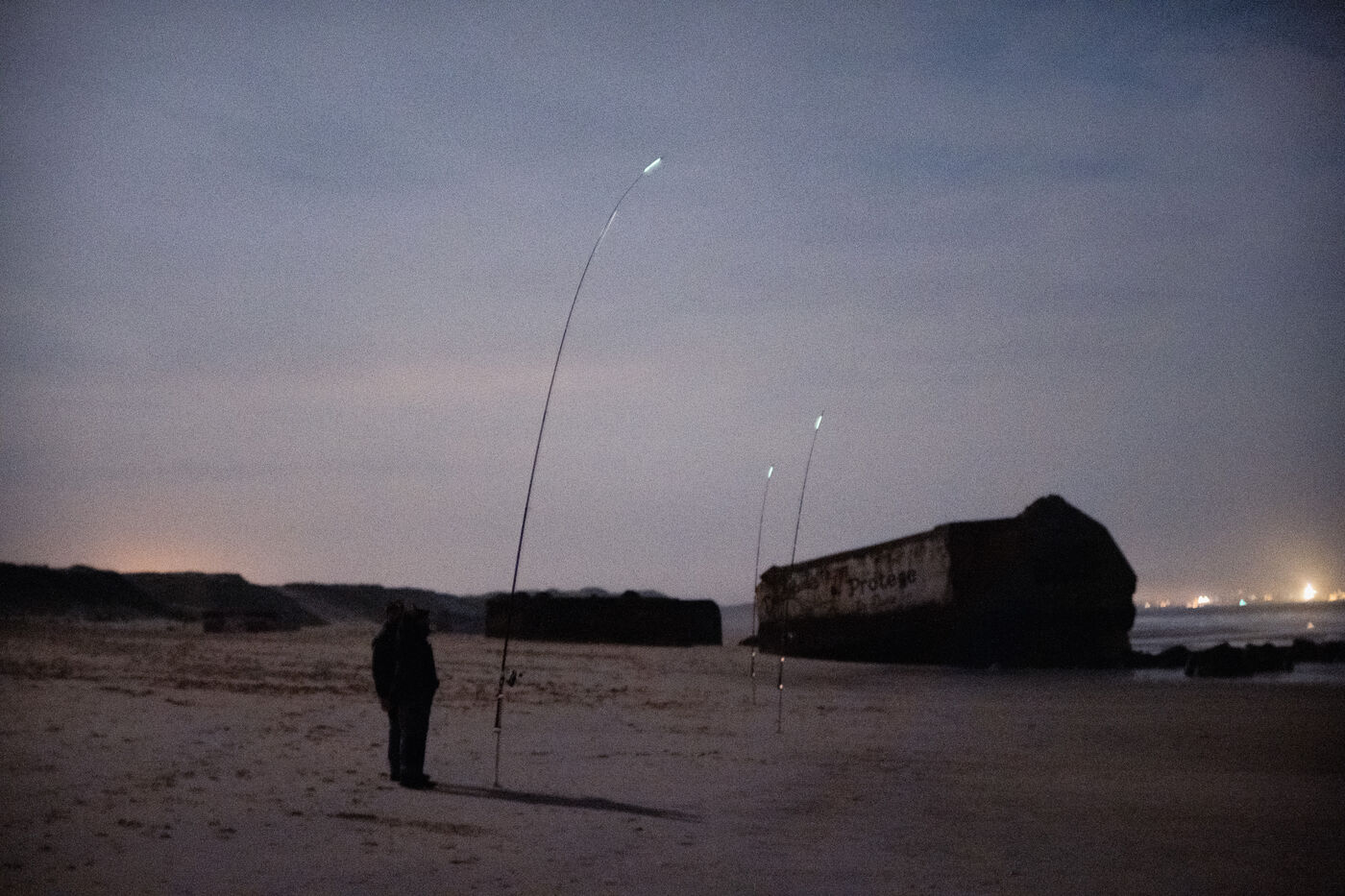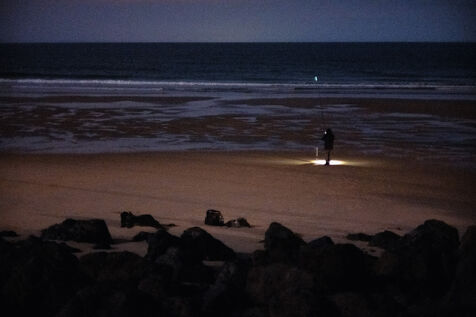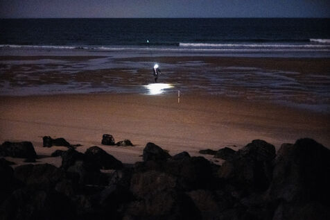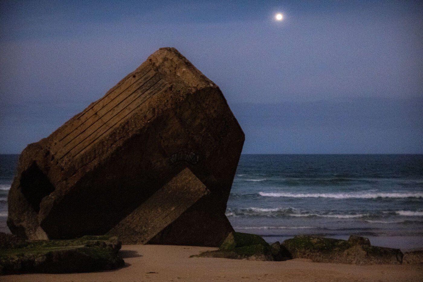 Les Landes sont connues pour leurs plages immenses bordées de dunes à l'apparence plus sauvage que leurs équivalentes basques. Une balade sous la lune de minuit le long de la plage de Santocha à Capbreton a donné l'occasion de se plonger dans la vie nocturne de ces longues étendues de sable. Entre les blockhaus émergés au fil des ans, apparaissent des pêcheurs solitaires et leurs cannes lumineuses, et des constructions de bois mystérieuses, presque mystiques, oeuvres d'habitué.es à l esprit créatif qui érigent des installations bigarrées faites du bois flottant de l Adour échoué sur le sable. L obscurité invitant à la rêverie, on pourrait penser devenir témoin de l atterrissage d êtres et d engins venus d un autre monde...