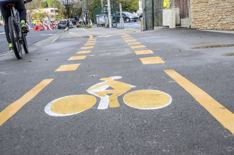Les aménagements provisoires réservés aux cyclistes ne cessent de s etendre en ville comm en campagne. Illustration de signalisations de pistes cyclables provisoires et definitives.