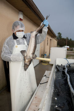 Aquitaine. Bassin of Arcachon. Biganos, the 27/11/2020 Biganos. A sturgeons farm destined for the production of caviar from France. Photo Eric Beracassat/Hans Lucas