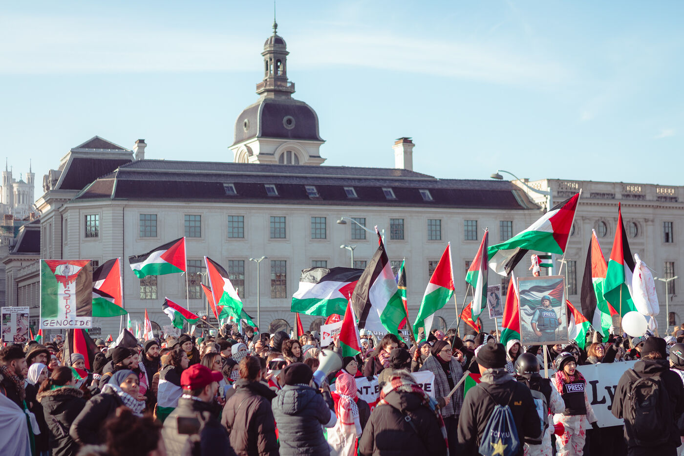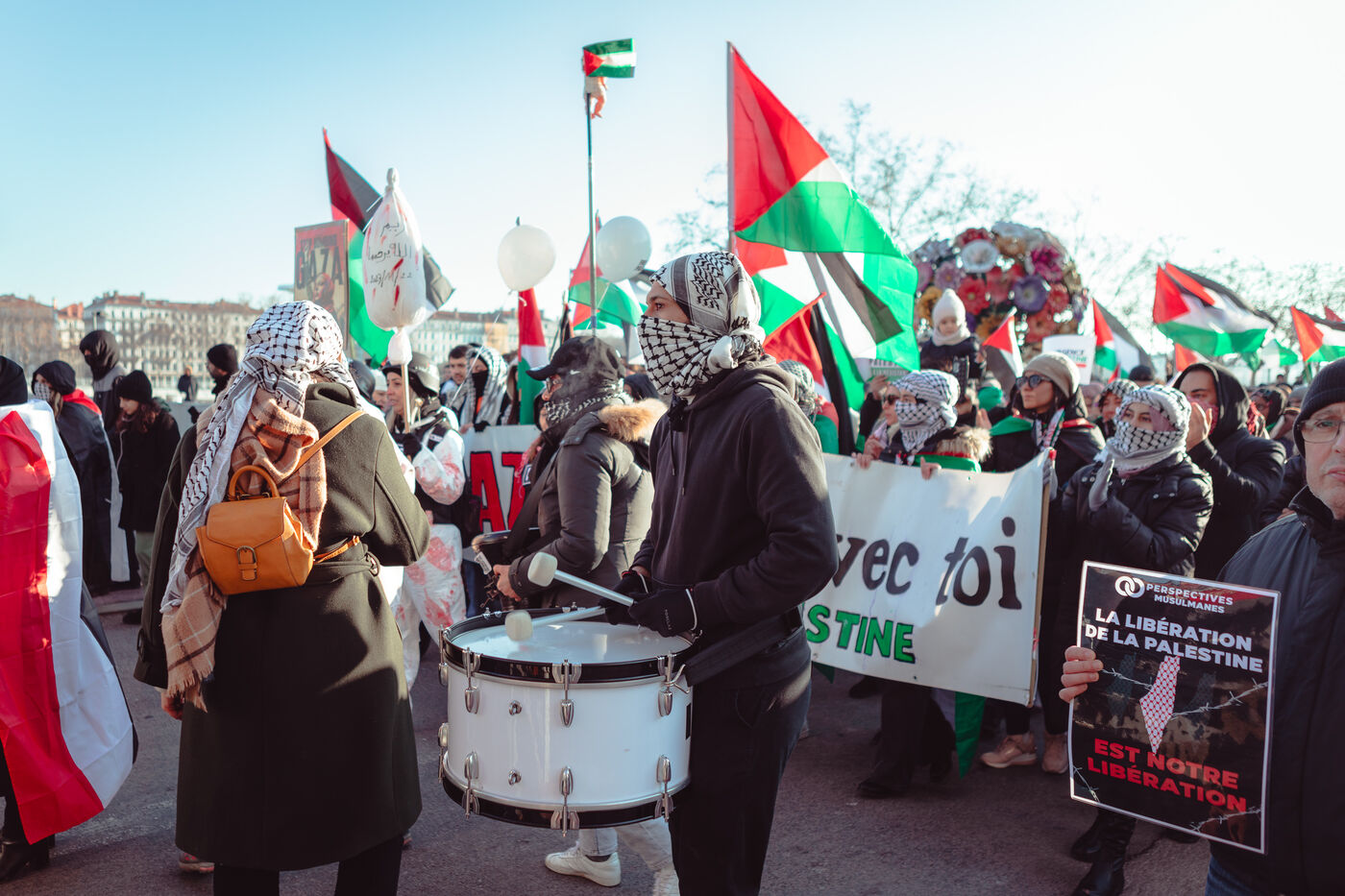 Plusieurs centaines de personnes ont manifesté en soutien au peuple palestinien, qui subit un génocide par l'État d'Israël depuis 106 jours maintenant.