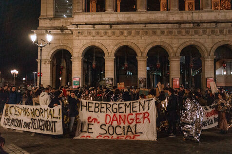 Rally called by the collective Hébergement En Danger (HED), a group of social workers working in emergency accommodation in Lyon.