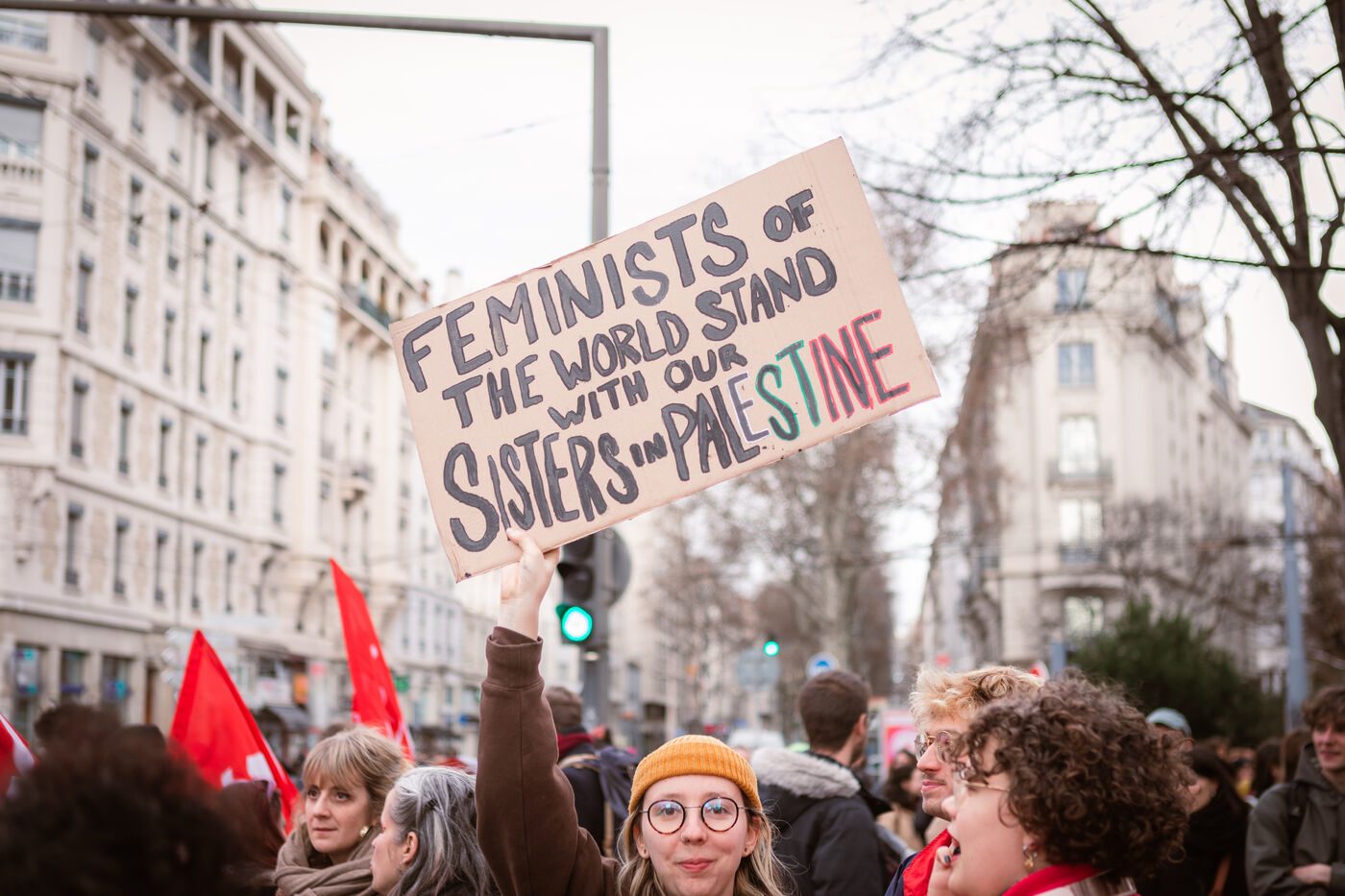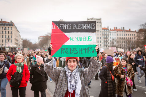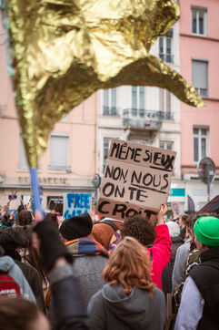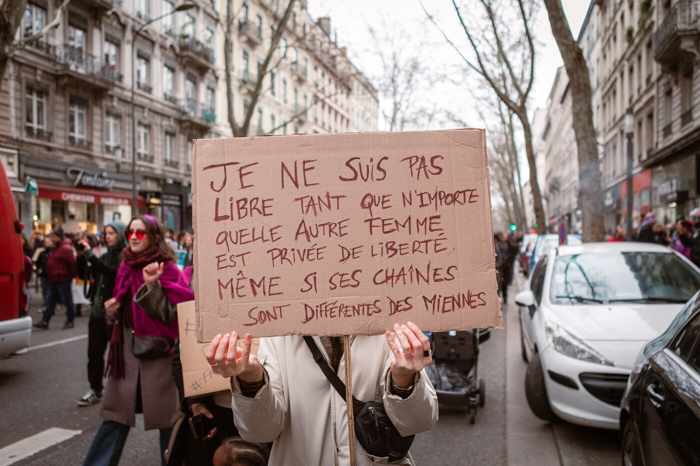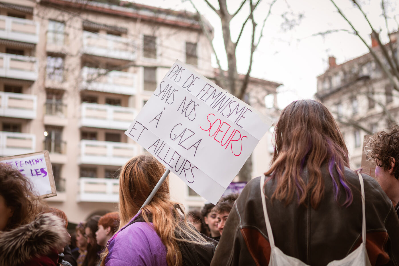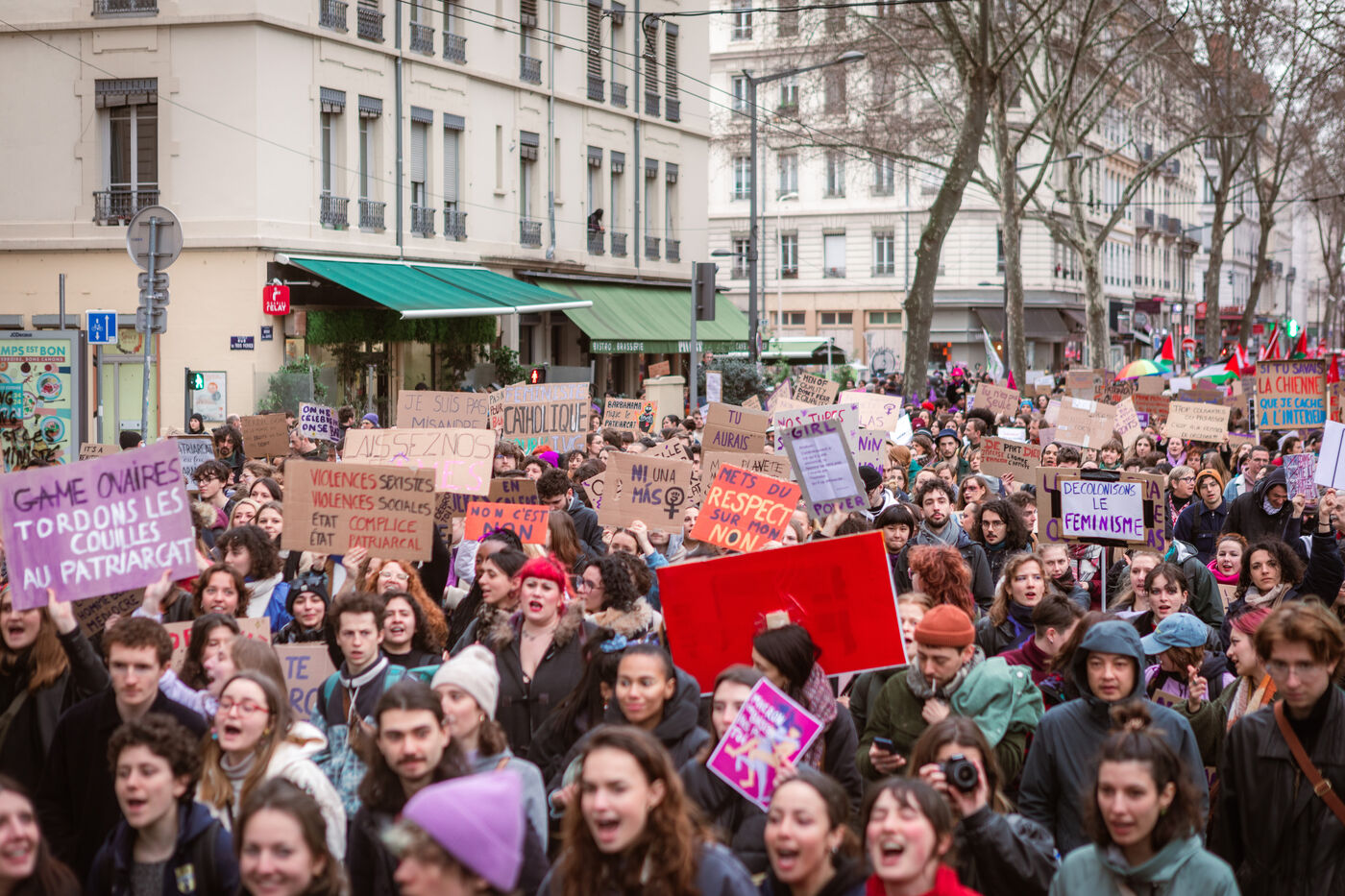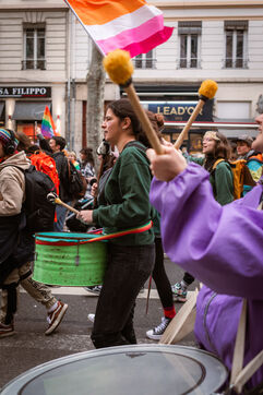 Grève féministe Nationale le 8 Mars 2024, manifestation à l'appel du Collectif Droits des Femmes 69 pour la journée internationale de lutte pour les droits des femmes et minorités de genre. À Lyon des milliers de personnes ont déambulé dans les rues pour revendiquer leurs droits et leur soutien dans la lutte féministe.