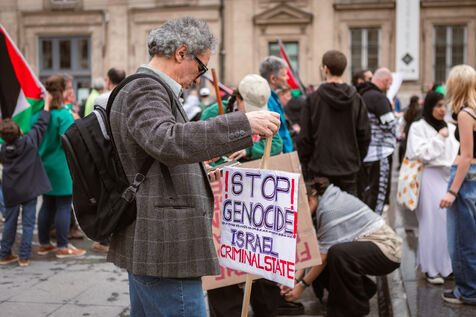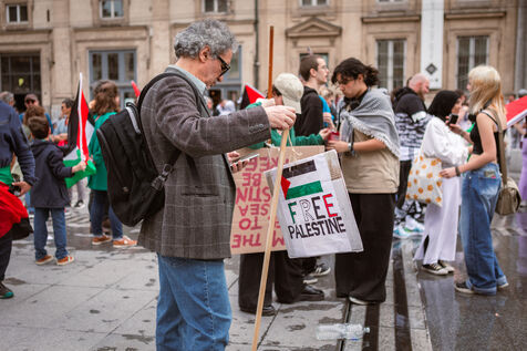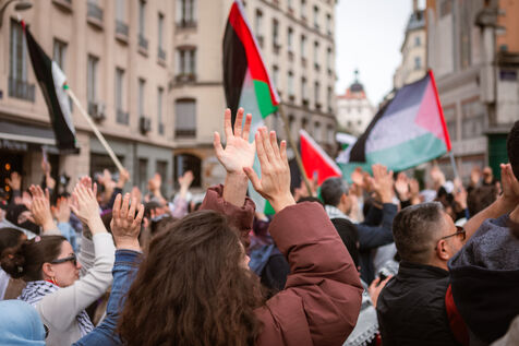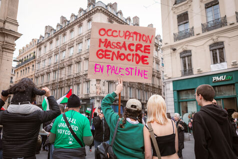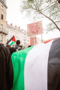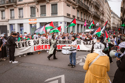 Manifestation à l'appel du Collectif 69 Palestine le 6 avril 2024 à Lyon, pour exiger un cessez-le-feu immédiat et permanent pour la bande de Gaza, l'arrêt des bombardements et des déplacements forcés des populations.