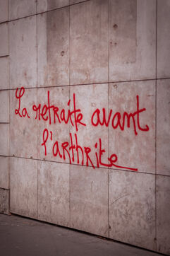 Graffiti spotted on the walls of Lyon, notably during demonstrations against pension reform from January to May 2023.