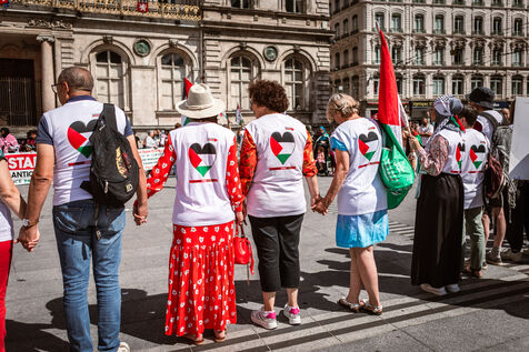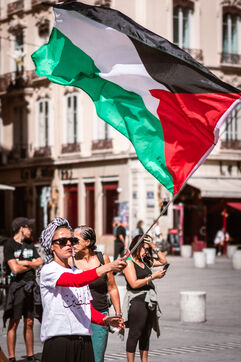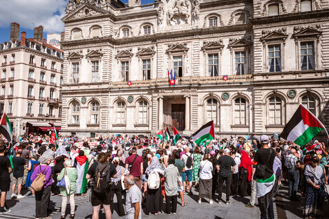 Arrival of the Palestine Liberation Flag at Place des Terreaux in Lyon on August 25, 2024.