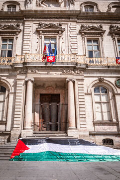 Arrivée du drapeau de la libération de la Palestine sur la Place des Terreaux à Lyon le 25 août 2024.
