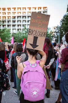 Rally against transphobia and the holding of a transphobic conference by Marguerite Stern in Lyon, on September 19, 2024, at the ISSEP school, founded by Marion Maréchal. Marguerite Stern co-wrote the transphobic book “TRANSMANIA” with Dora Moutot.