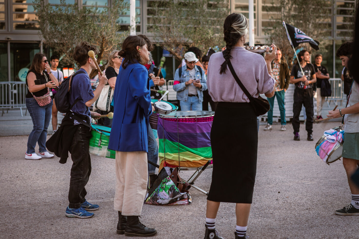 Rassemblement contre la transphobie et la tenue d’une conférence transphobe par Marguerite Stern à Lyon, le 19 septembre 2024, au sein de l’école ISSEP, fondée par Marion Maréchal. Marguerite Stern a co-écrit le livre “TRANSMANIA” avec Dora Moutot, aux propos transphobes.