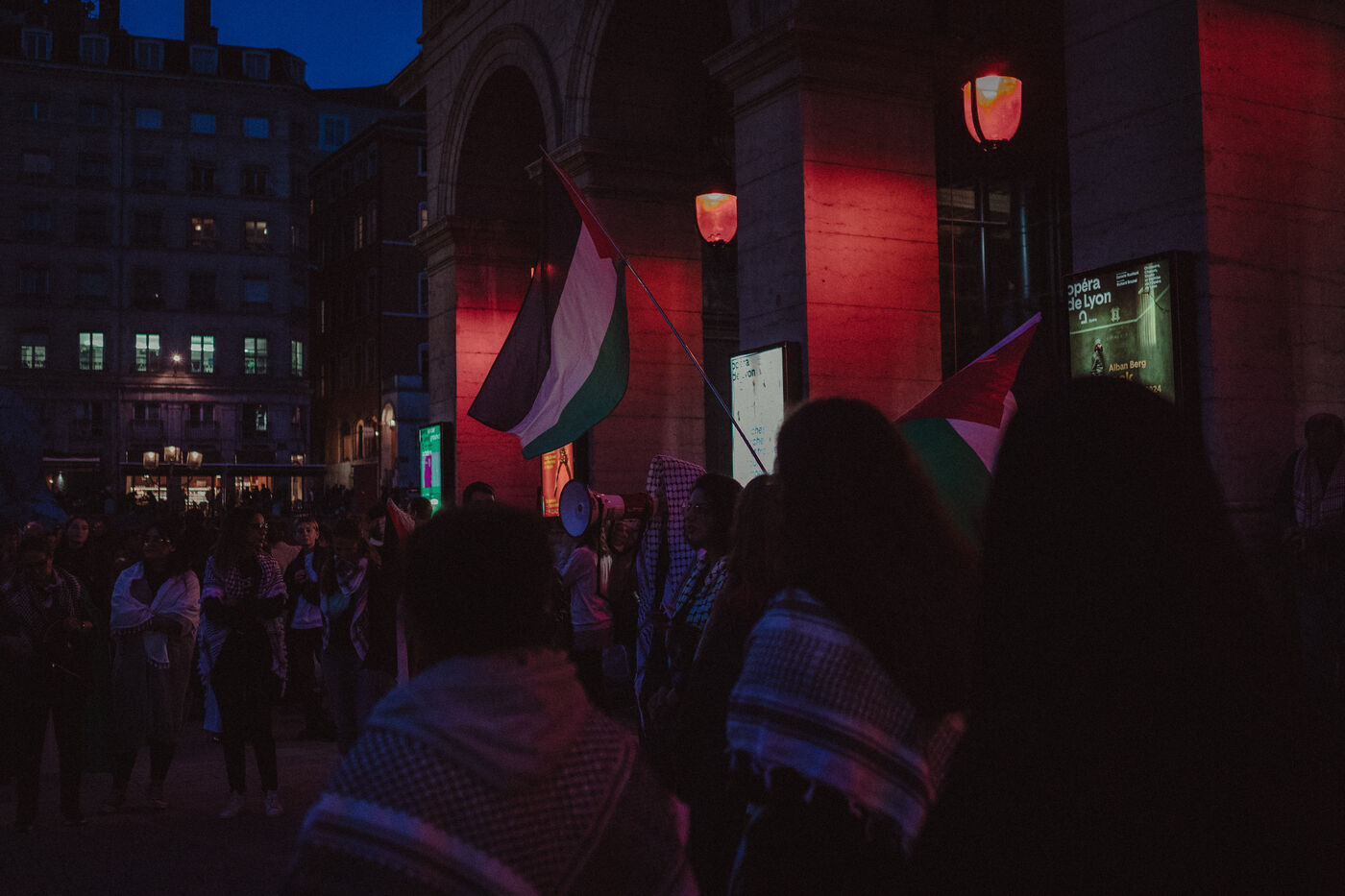 A demonstration in support of the Palestinian people took place in Lyon, France on 14 October 2024. People gathered following the horrors of the night of October 13 in Gaza to denounce the complicity of the dominant media and the West.