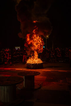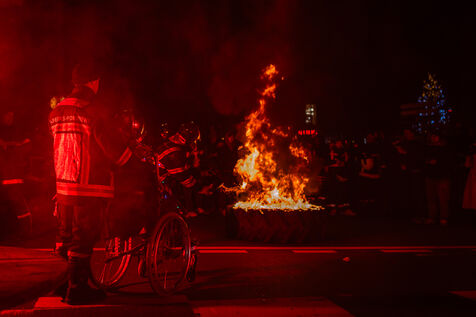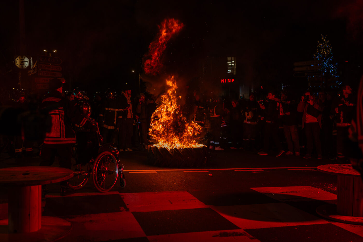 Action des sapeurs pompiers de Lyon lors du premier soir de la fête des lumières. L’un d’être eux, Lionel, a fait une grève de la fin de plusieurs jours. En grève depuis bientôt 2 mois, ils réclament plus de personnel : les effectifs diminuent tandis que les interventions augmentent. Ils ont manifesté à Lyon le 5 décembre 2024.