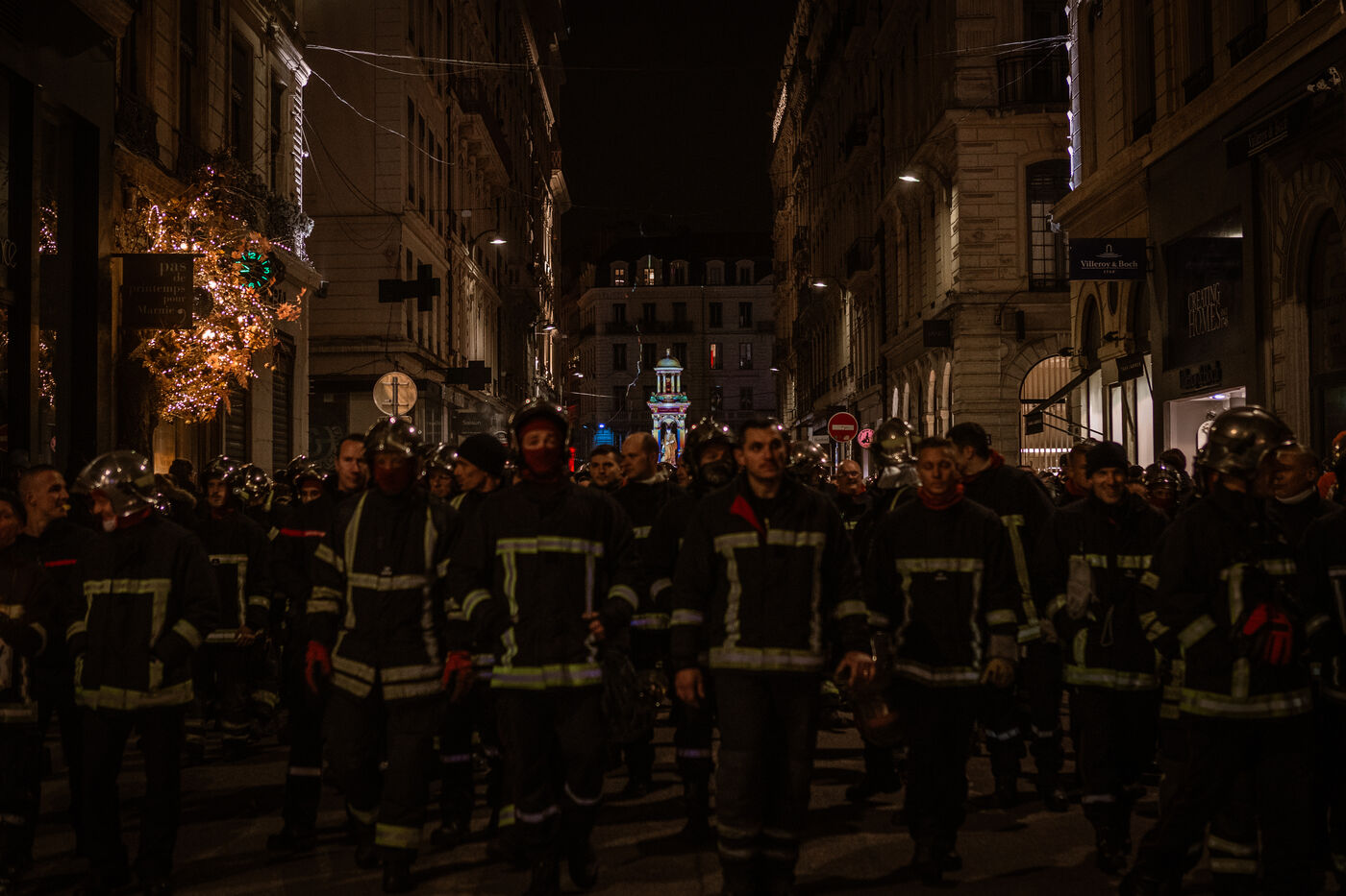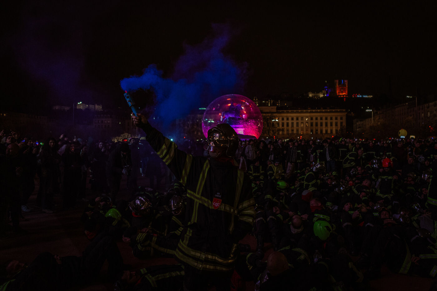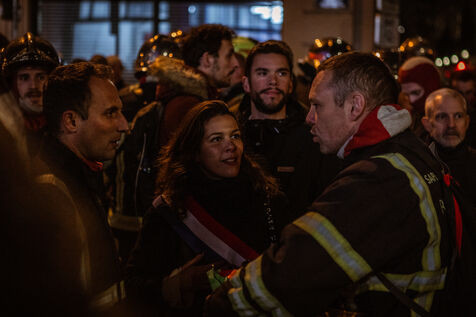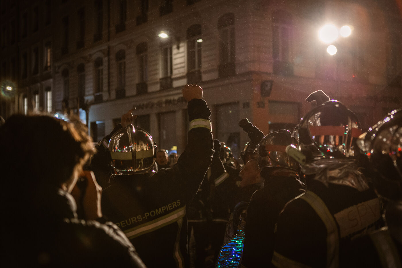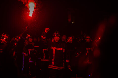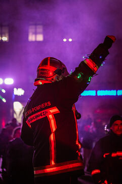 Action of the firefighters of Lyon on the first evening of the festival of lights. One of them, Lionel, went on a strike for the rest of the day. On strike for almost 2 months, they are demanding more staff: the number of staff is decreasing while interventions increase. They demonstrated in Lyon on 5 December 2024.