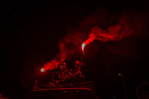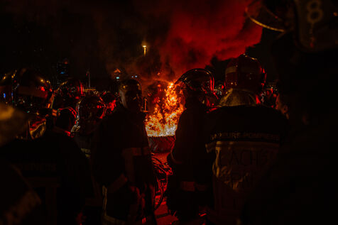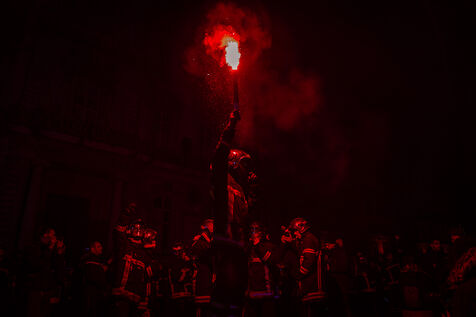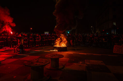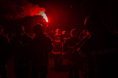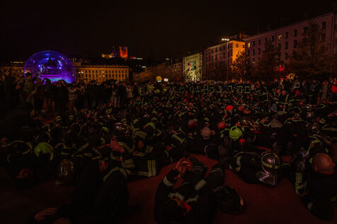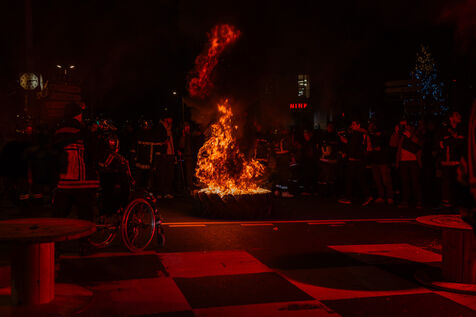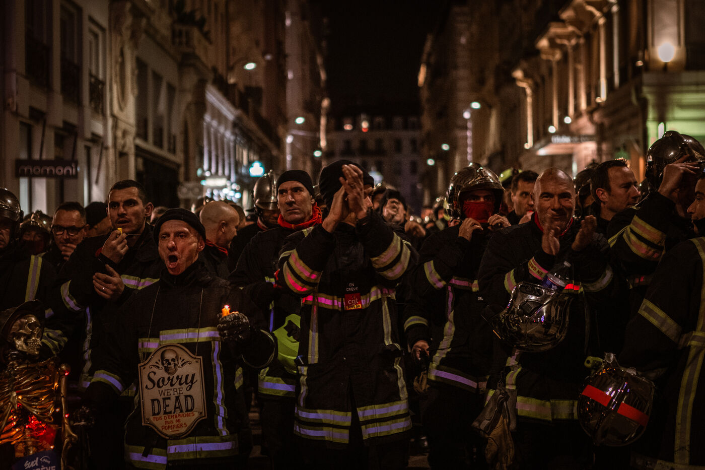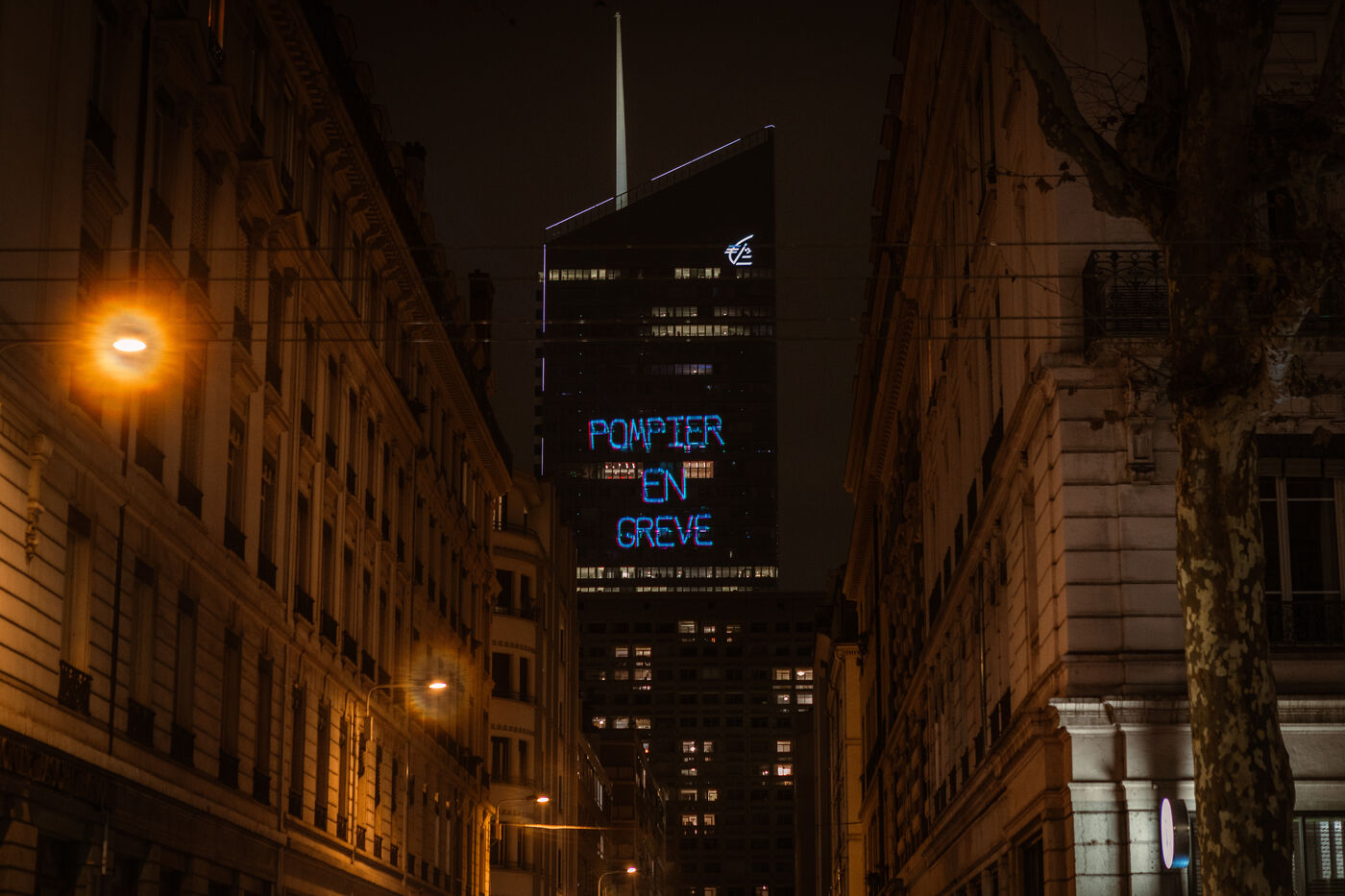 Action of the firefighters of Lyon on the first evening of the festival of lights. One of them, Lionel, went on a strike for the rest of the day. On strike for almost 2 months, they are demanding more staff: the number of staff is decreasing while interventions increase. They demonstrated in Lyon on 5 December 2024.