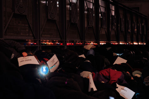 Un die-in organisé par l'association féministes Nous Toutes Rhône a eu lieu devant le Palais de Justice de Lyon le 11 janvier 2025 afin de rendre femmage aux victimes de féminicides en 2024 en France.