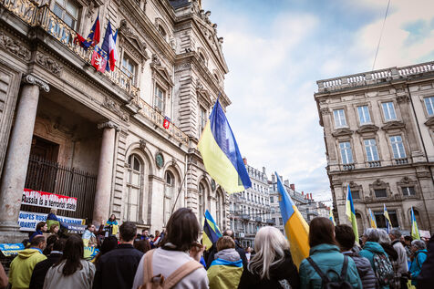 Un rassemblement à l'occasion de la semaine de solidarité avec la résistance du peuple ukrainien organisée par le Collectif 69 de soutien au peuple ukrainien a eu lieu à Lyon en France le 23 février 2025.