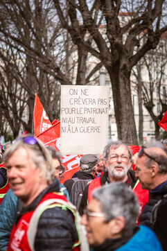A mobilization of the unions of culture against the budget cuts took place in front of the rectorate in Lyon, France on March 20, 2025. This was followed by a demonstration against the reform of social security, carried out by the CGT pensions from Place Jean Macé.