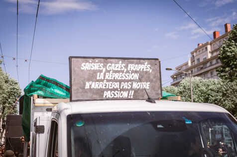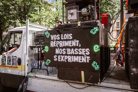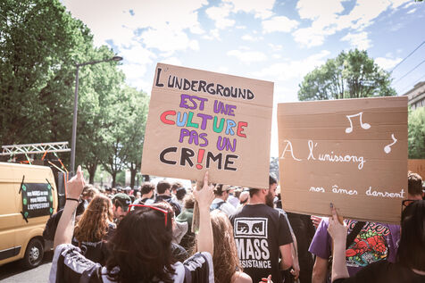 A festive demonstration took place in defense of the free party and against repression in Lyon, France on April 12, 2025.