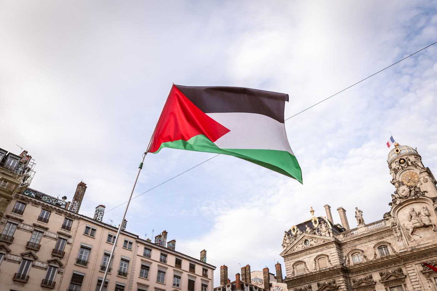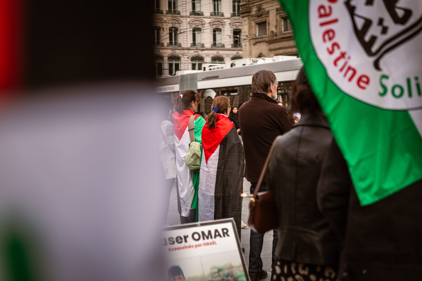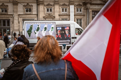 At the call of the collective 69 Palestine, many people gathered to attend a die-in in tribute to the Palestinians and palestiennes killed by the genocidal state of Israel and in support of the Palestinian people in Lyon, France on April 12, 2025.