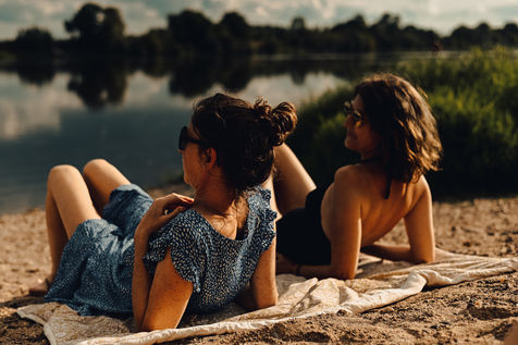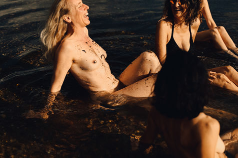 Sur une plage minuscule, en contrebas d'un chemin caché aux non-initiés, des amies se retrouvent pour passer un moment de détente. L'environnement sauvage autorise le corps à prendre davantage de place que d'ordinaire, et chacune peut se laisser aller à ce qui lui fait plaisir, goûter l'eau nue ou en maillot, faire des blagues, sentir le soleil chauffer la peau. Leur amitié du quotidien leur permet confiance et bienveillance, loin des injonctions de répondre à des critères de beauté. Elles sont libres. Et ensemble.