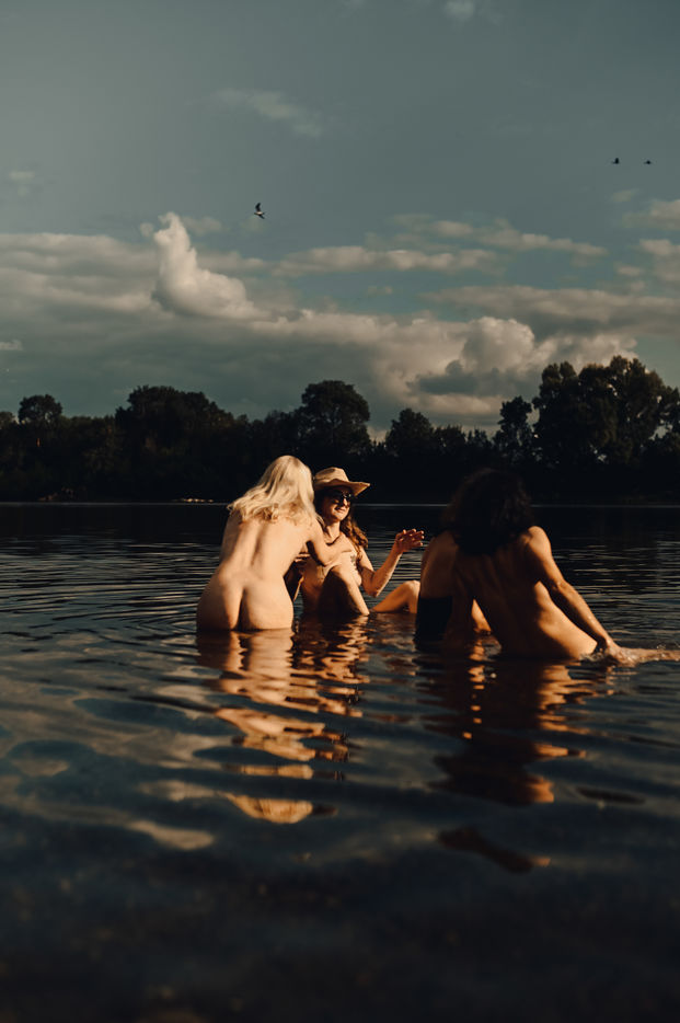 On a tiny beach, down a path hidden from the uninitiated, a group of women meet for a moment of relaxation. The wild environment allows the body to take up more space than usual, and each one can indulge in what pleases her, taste the water naked or in a swimming costume, make jokes, feel the sun warming her skin. Their everyday friendship allows them to trust and be kind, far from the injunctions to meet beauty criteria. They are free. And together.