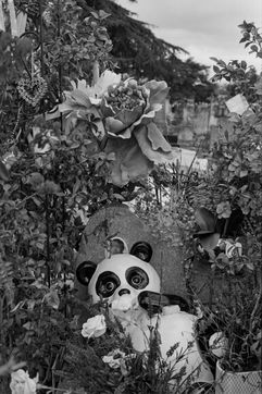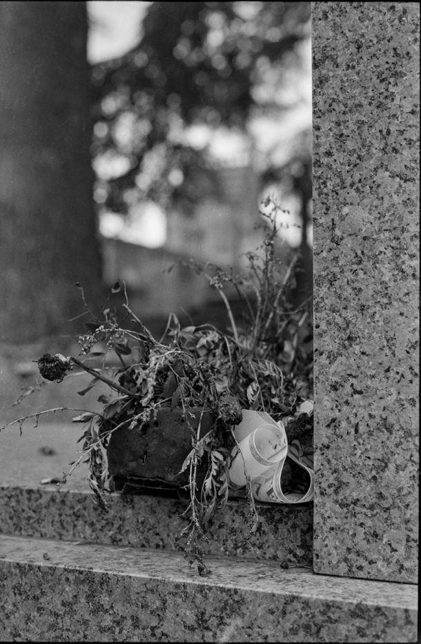 Dans les cimetières, on note la présence des vivants par ce qu'ils laissent sur les tombes, mais aussi leur absence par les traces du temps sans intervention et donc sans visite.