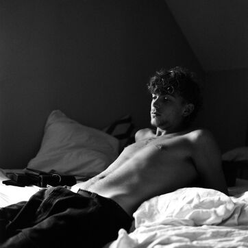 This series is an attempt to soothe and illuminate what we, his parents, are going through with the drug addiction of one of our children. I chose to shoot with a medium-format film camera, to take the time for the process, to help integrate the frightening reality, to put it at a distance too, to take a breath.