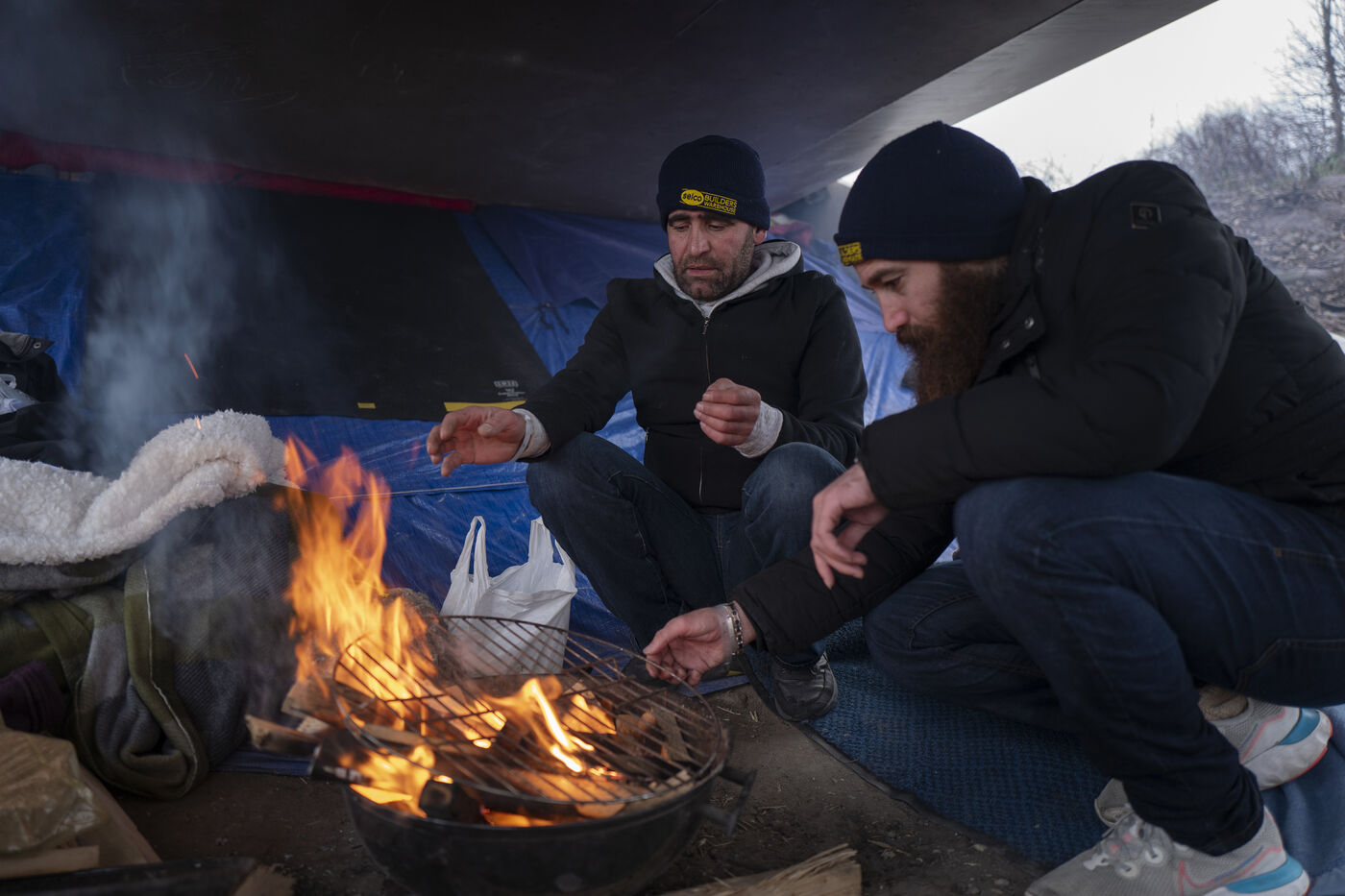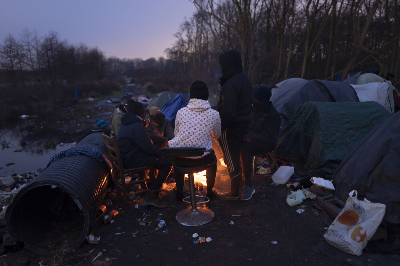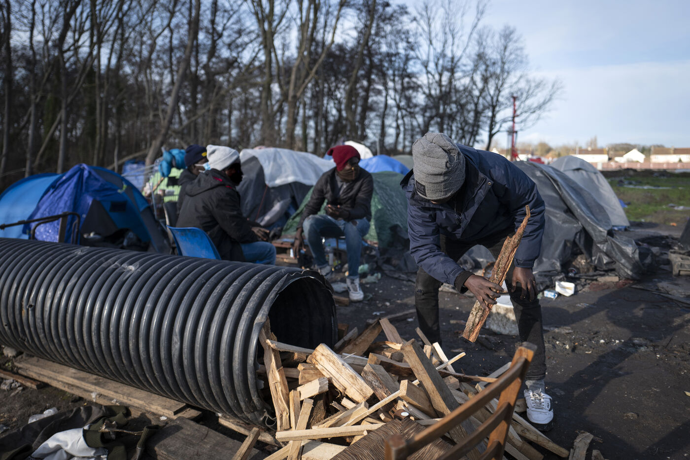 Tous les jours, les membres du projet Woodyard arpentent les ponts et autres terrains vagues de Calais. Aux pieds des camps de fortune, ils déposent des sacs remplis de bûchettes. Grâce à eux, les personnes exilées se réchauffent, cuisinent et tuent le temps autour des flammes. Souvent sans argent pour payer la traversée de la Manche en bateau, les candidats à la traversée survivent pendant des mois dans la boue. Avec, pour seul salut, un faisceau d?associations qui se démènent pour leur survie.