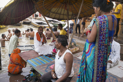 Située sur la rive gauche du Gange, Varanasi est la ville la plus sacrée de l'hindouisme et du jaïnisme. Elle accueille le plus de pèlerins en Inde. A la fin de la mousson les ghâts sont réduits au strict minimum avec la montée des eaux du Ganges.