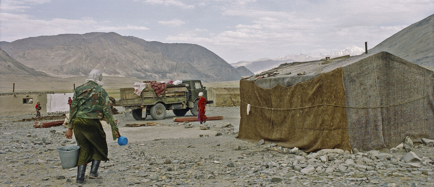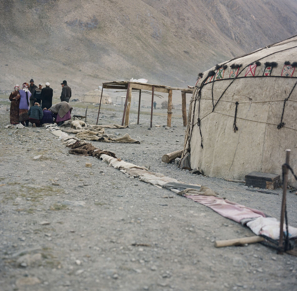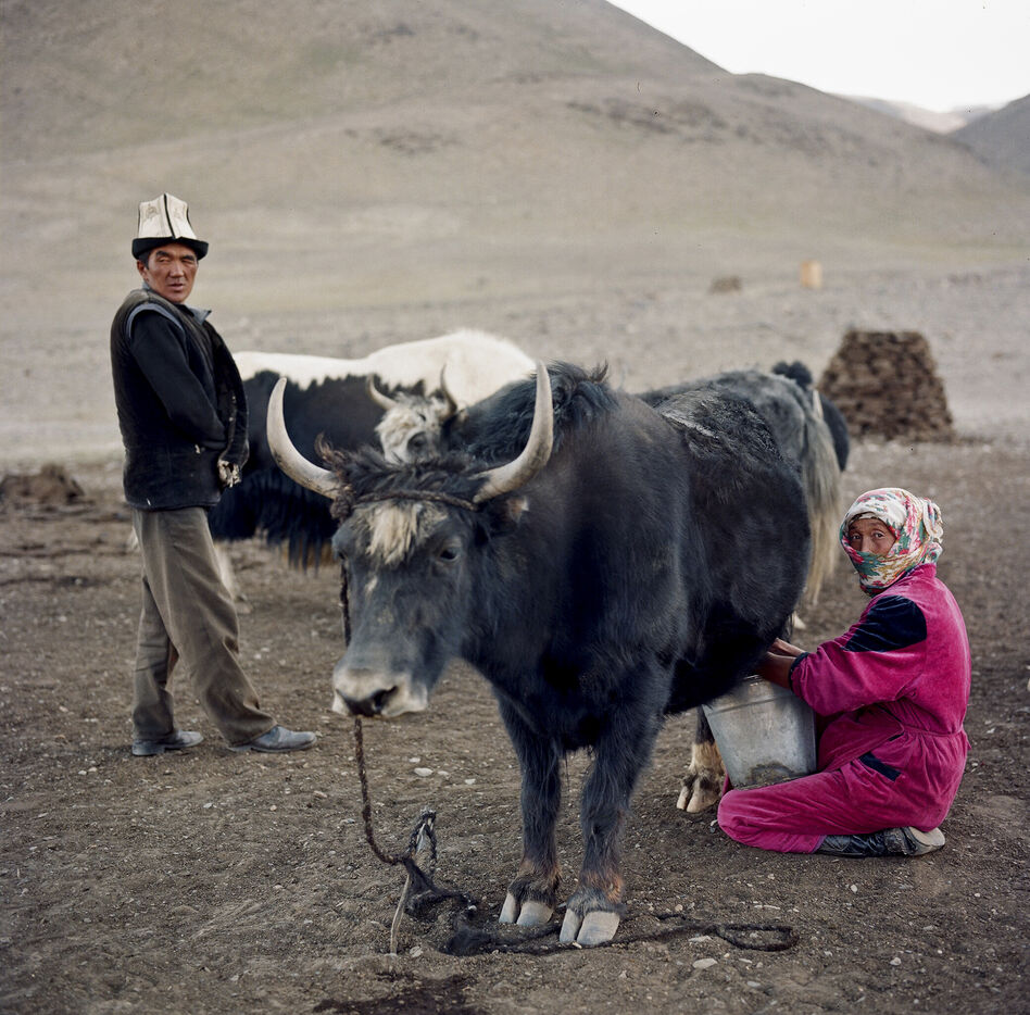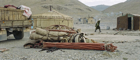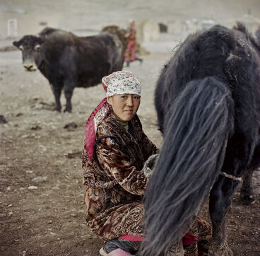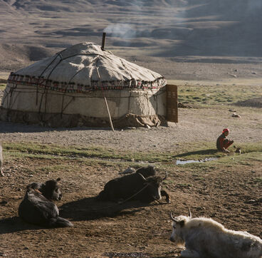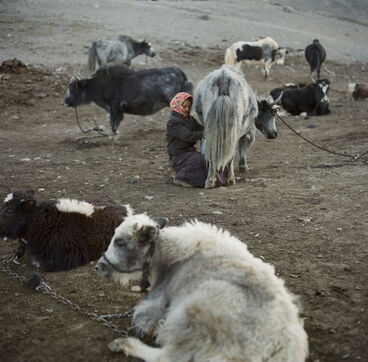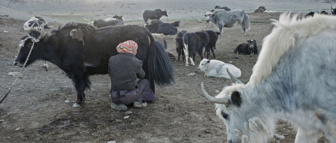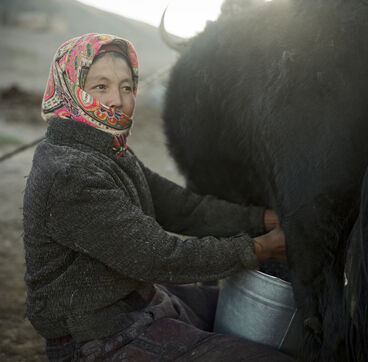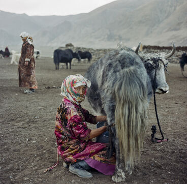From May to September, 8 families from the village of Karakul go up to the jailoo of Jalang, situated at 4,094 m, with 60 to 70 yaks and 300 to 400 sheep. The jailoo consists of sun-dried brick houses, traditional yurts and tents. Milking of the yaks takes place twice a day in the morning and evening.