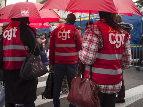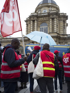 Rassemblement devant le sénat des agents de propreté qui craignent pour leur santé. La réforme des retraites les amènerait a travailler jusqu'à 64 ans
