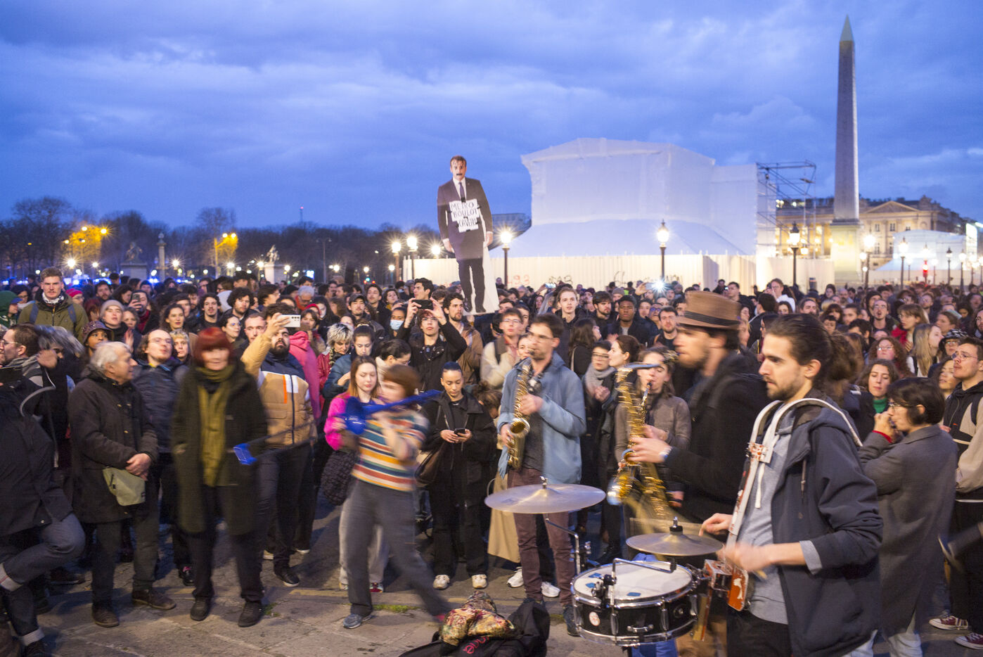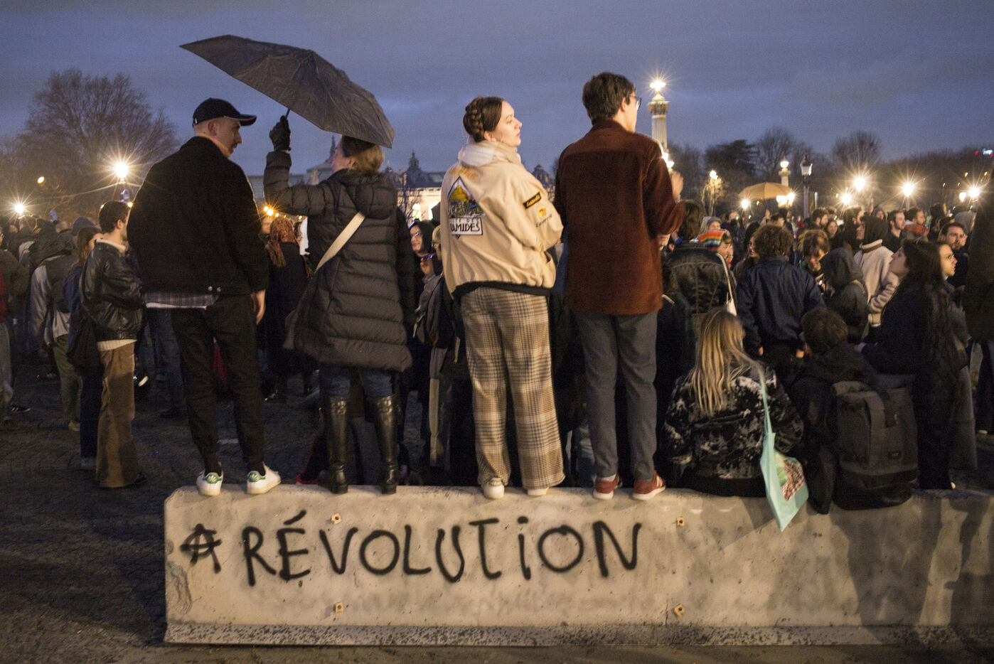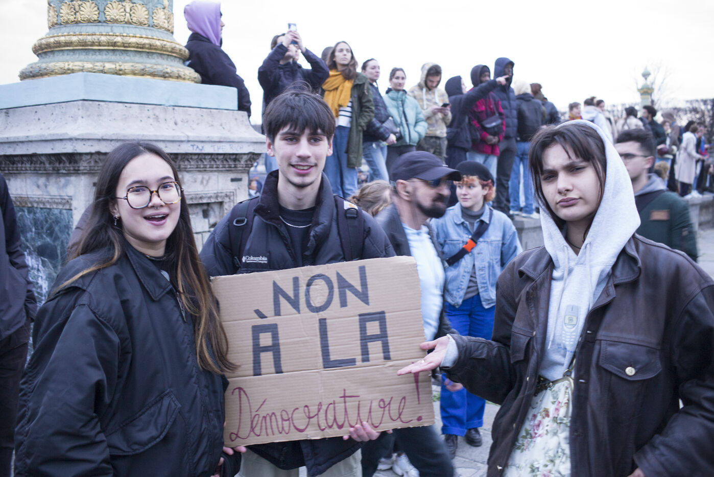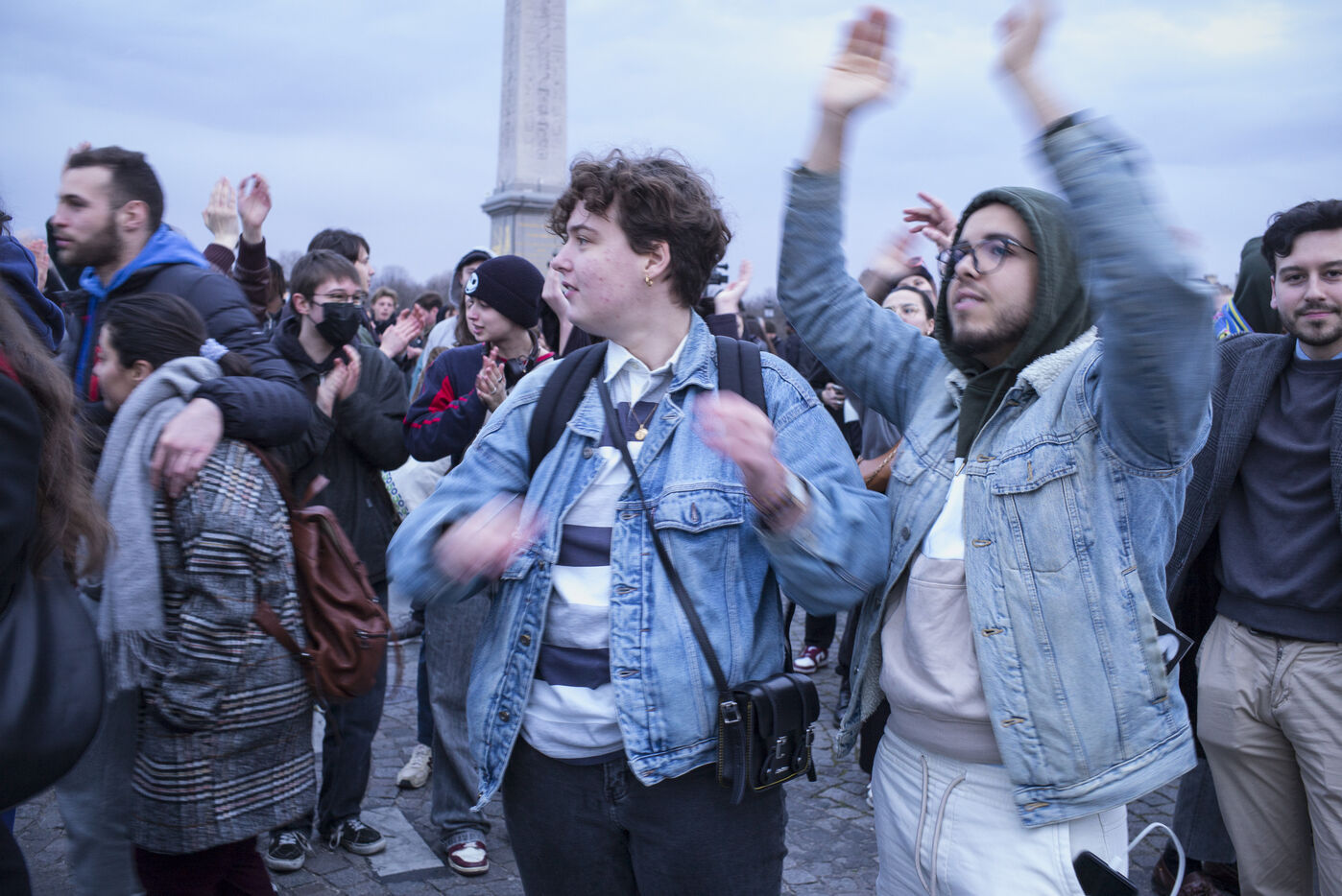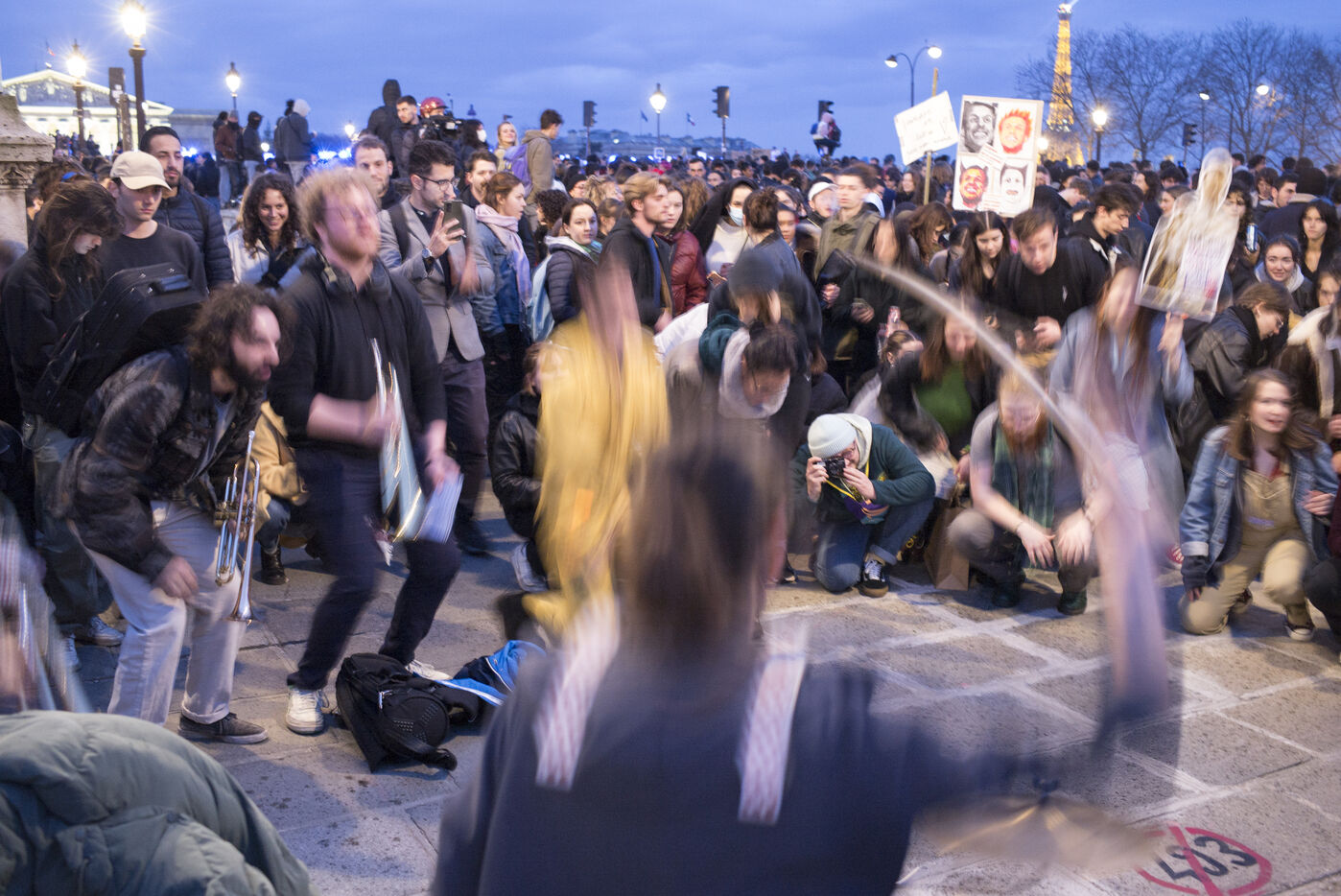 The day after Emmanuel Macron's government used the 49.3 to pass the pension reform, a gathering took place on the Place de la Concorde.