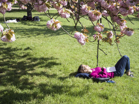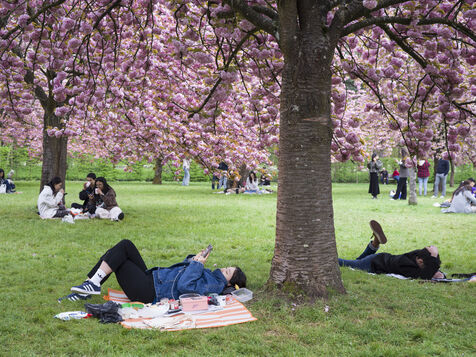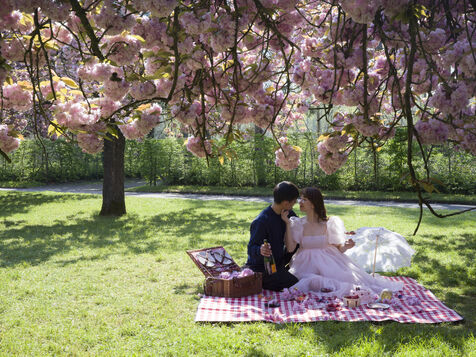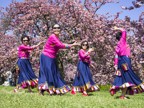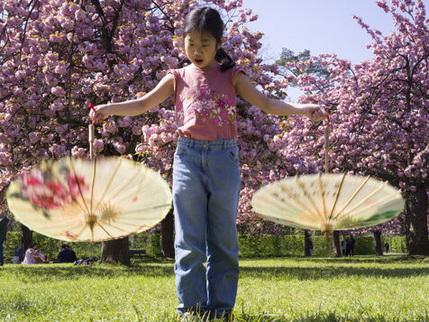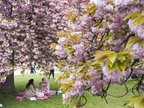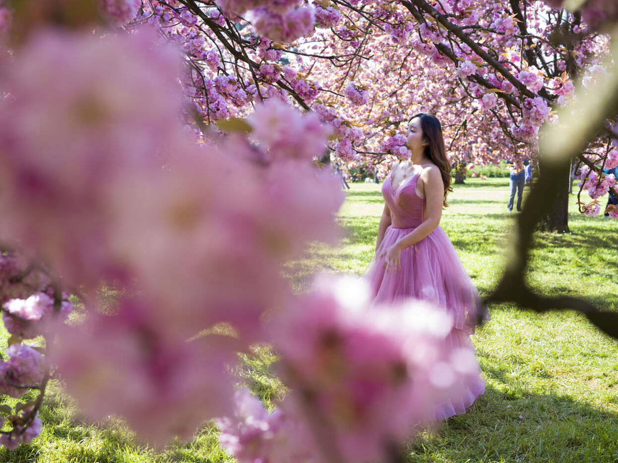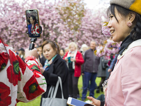 On célèbre Hanami, la fameuse fête des cerisiers en fleurs du printemps, au Parc de Sceaux.