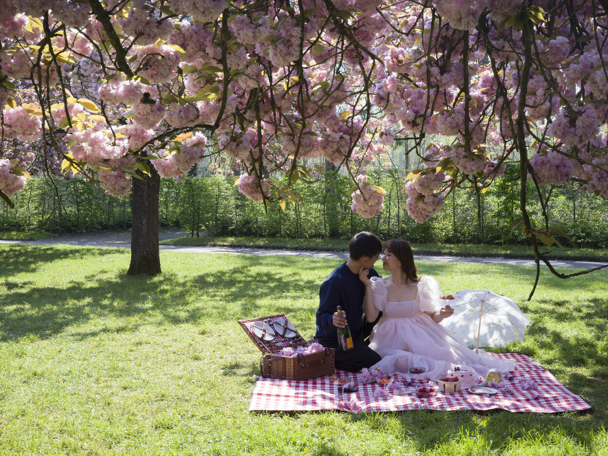 Hanami, the famous spring cherry blossom festival, is celebrated in the Parc de Sceaux.