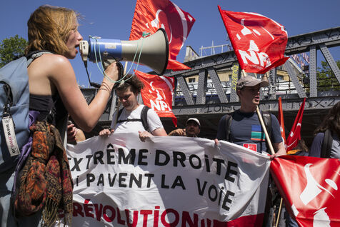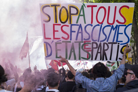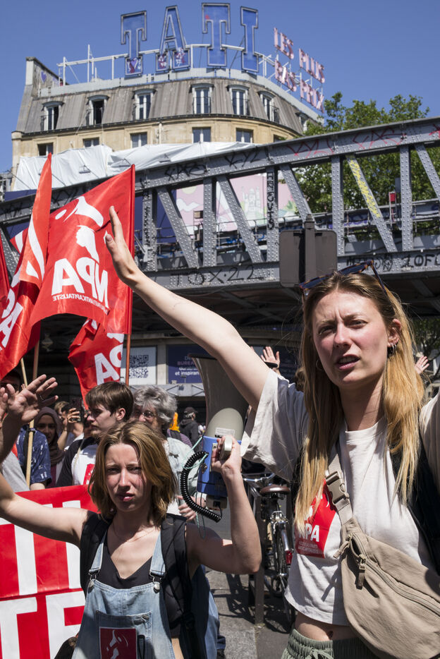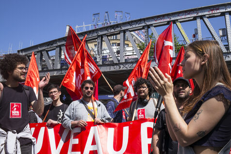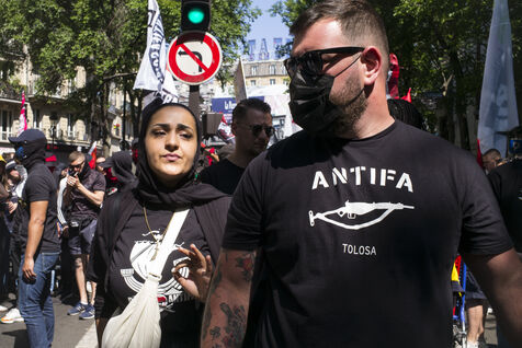 Anti-fascist demonstration in Barbes Rochechouart to mark the tenth anniversary of the murder of 18-year-old anti-fascist activist Clement Méric by skinheads.