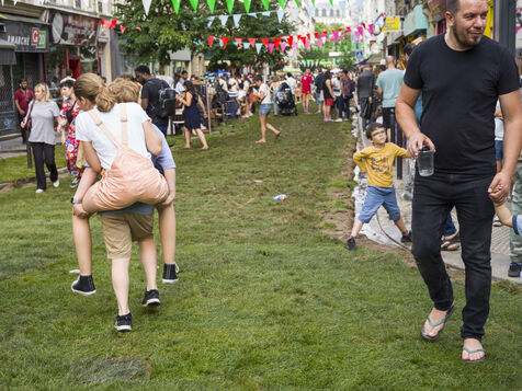 Carré Versigny, an association of local residents and shopkeepers, is organising the Midi Minuit festival in a district of the 18th arrondissement of Paris. Street art, concerts, face painting, pétanque and a fashion show are all on the programme on the lawns laid out on the tarmac in rue Joseph-Dijon, rue Versigny and rue Duhesme.