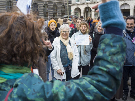 RALLY IN FRONT OF THE CONSEIL D'ETAT AGAINST THE DISSOLUTION OF SOULEVEMENTS DE LA TERRE.