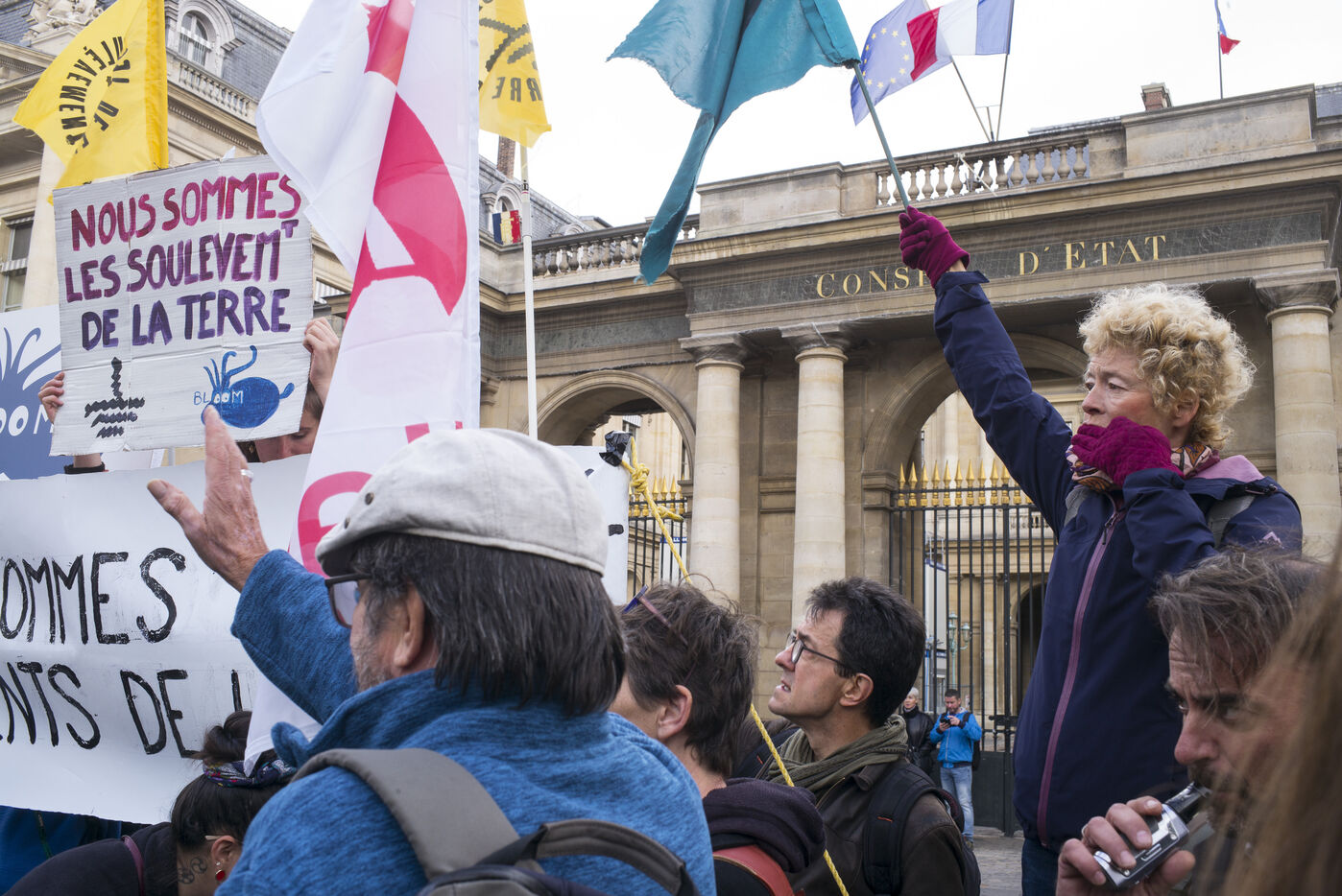 Le 11 aout 2023, le Conseil d'État a suspendu la dissolution des Soulèvements de la Terre prononcée par un décret en conseil des ministres du 21 juin dernier. Après cette décision provisoire, le Conseil d'État se réunit le 27 octobre 2023, pour prendre une décision définitive. Les Soulèvements de la terre appel à un rassemblement à 12 heures devant le Conseil d'État avec banderoles et pancartes.