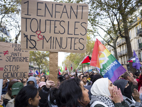 A demonstration has been called to demand an immediate ceasefire in Gaza, an end to bombing and an end to forced population displacement. This demonstration in Paris from République to Nation is being called by the national collective for a just and lasting peace between Palestinians and Israelis.